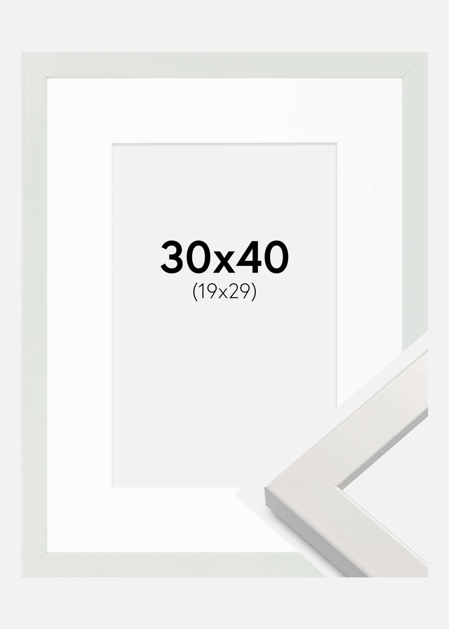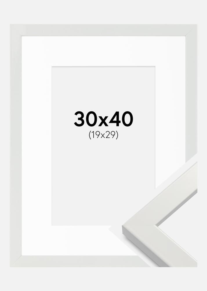 Moldura White Wood Glossy 30x40 cm - Passe-partout Branco 20x30 cm