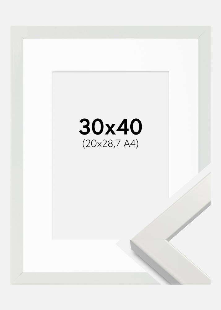 Moldura White Wood Glossy 30x40 cm - Passe-partout Branco 21x29,7 cm (A4)