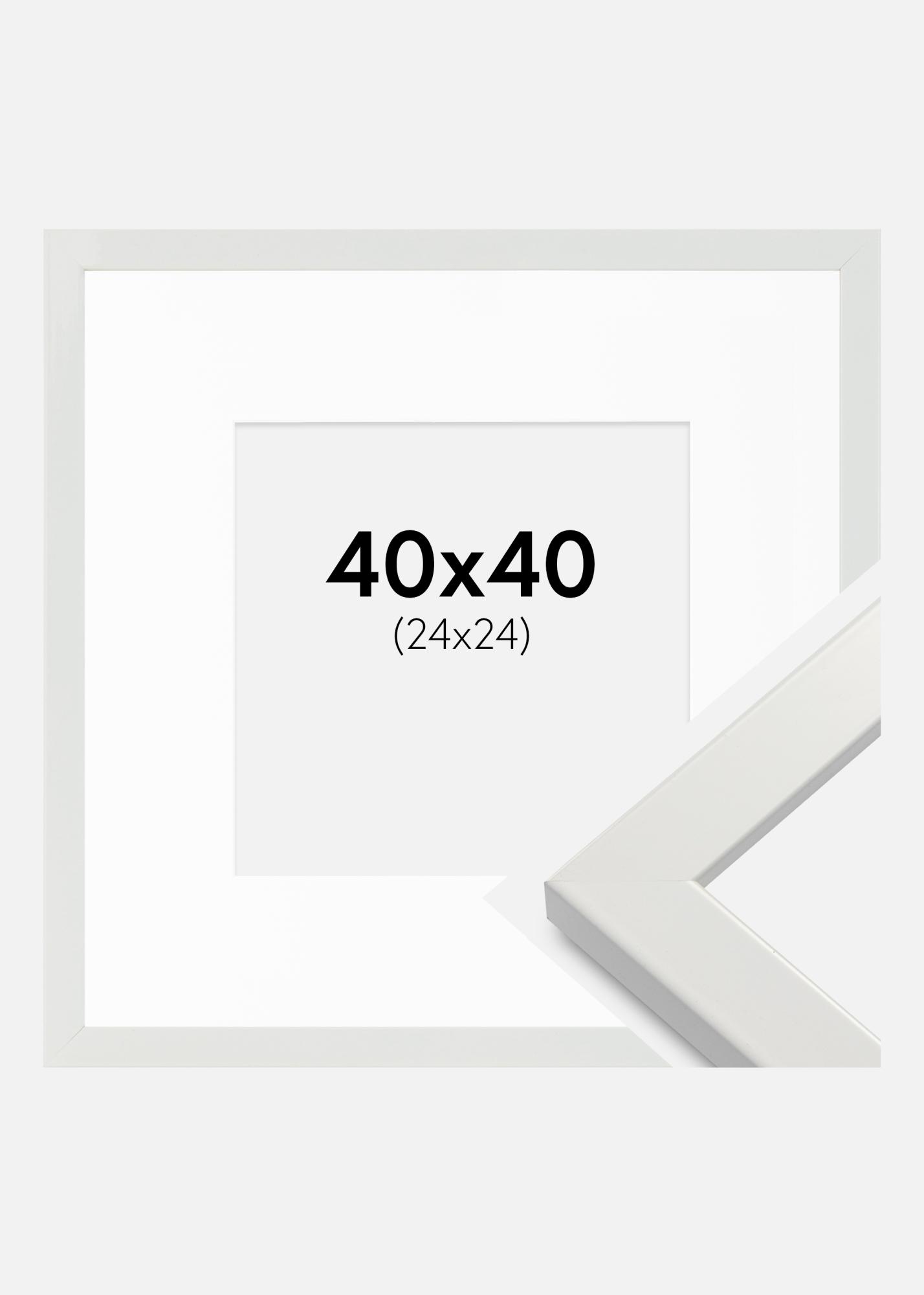 Moldura White Wood Glossy 40x40 cm - Passe-partout Branco 25x25 cm