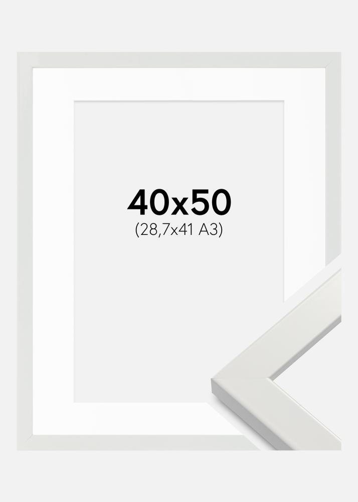 Moldura White Wood Glossy 40x50 cm - Passe-partout Branco 29,7x42 cm (A3)