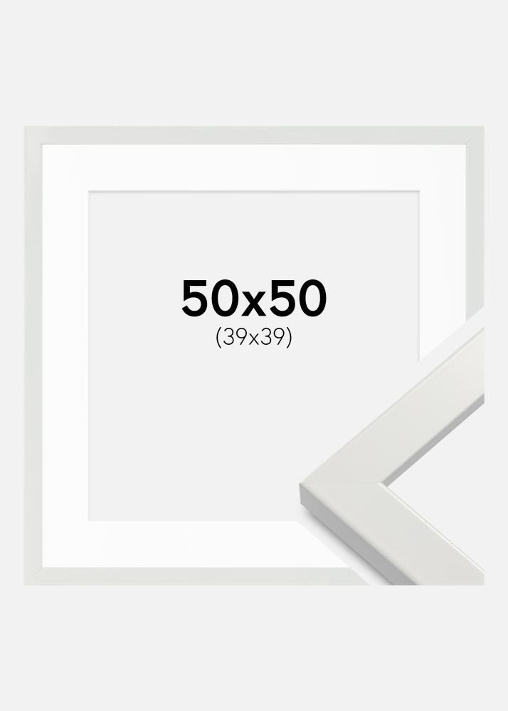 Moldura White Wood Glossy 50x50 cm - Passe-partout Branco 40x40 cm