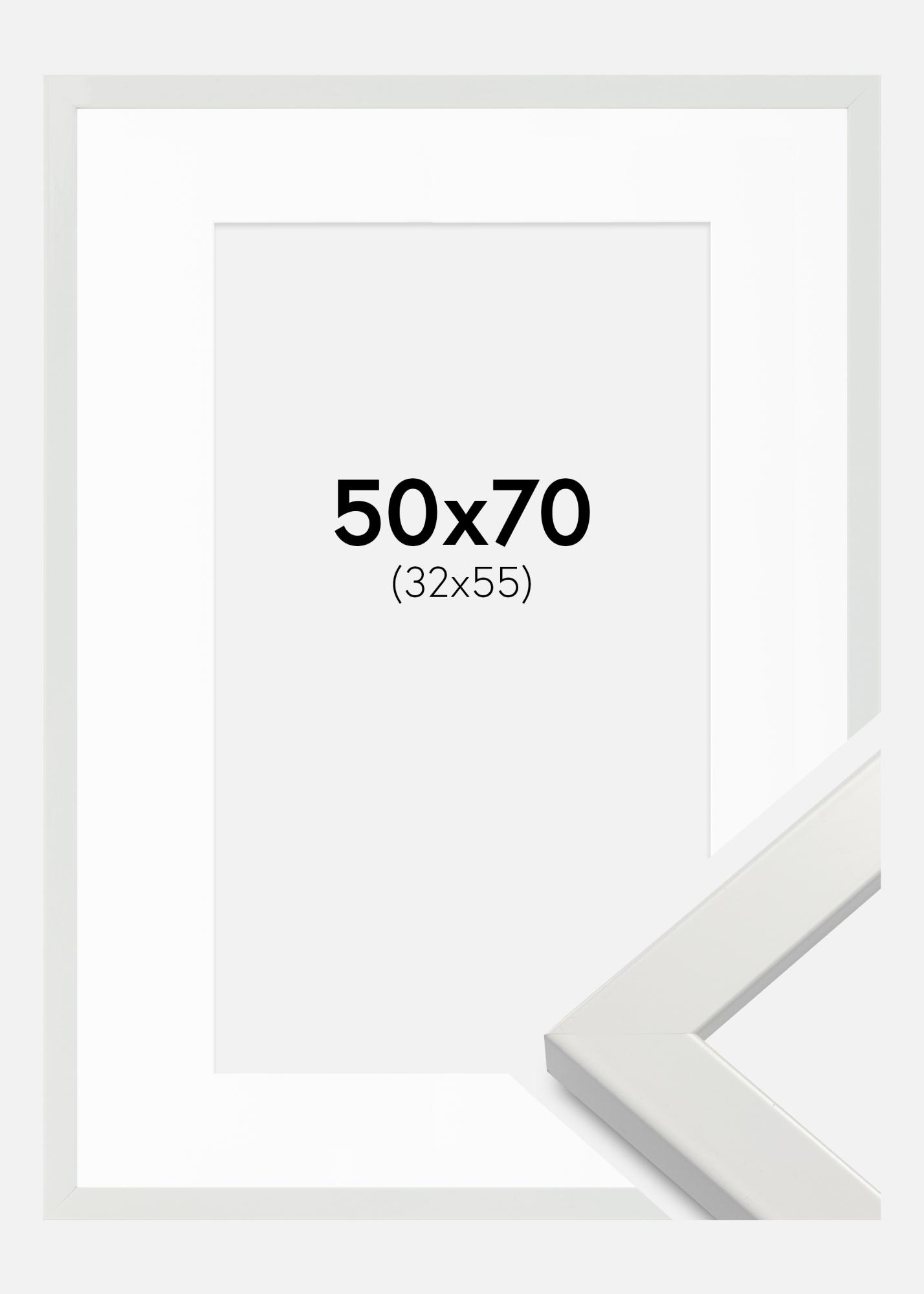 Moldura White Wood Glossy 50x70 cm - Passe-partout Branco 33x56 cm