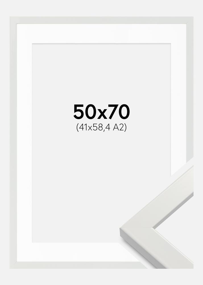 Moldura White Wood Glossy 50x70 cm - Passe-partout Branco 42x59,4 cm (A2)