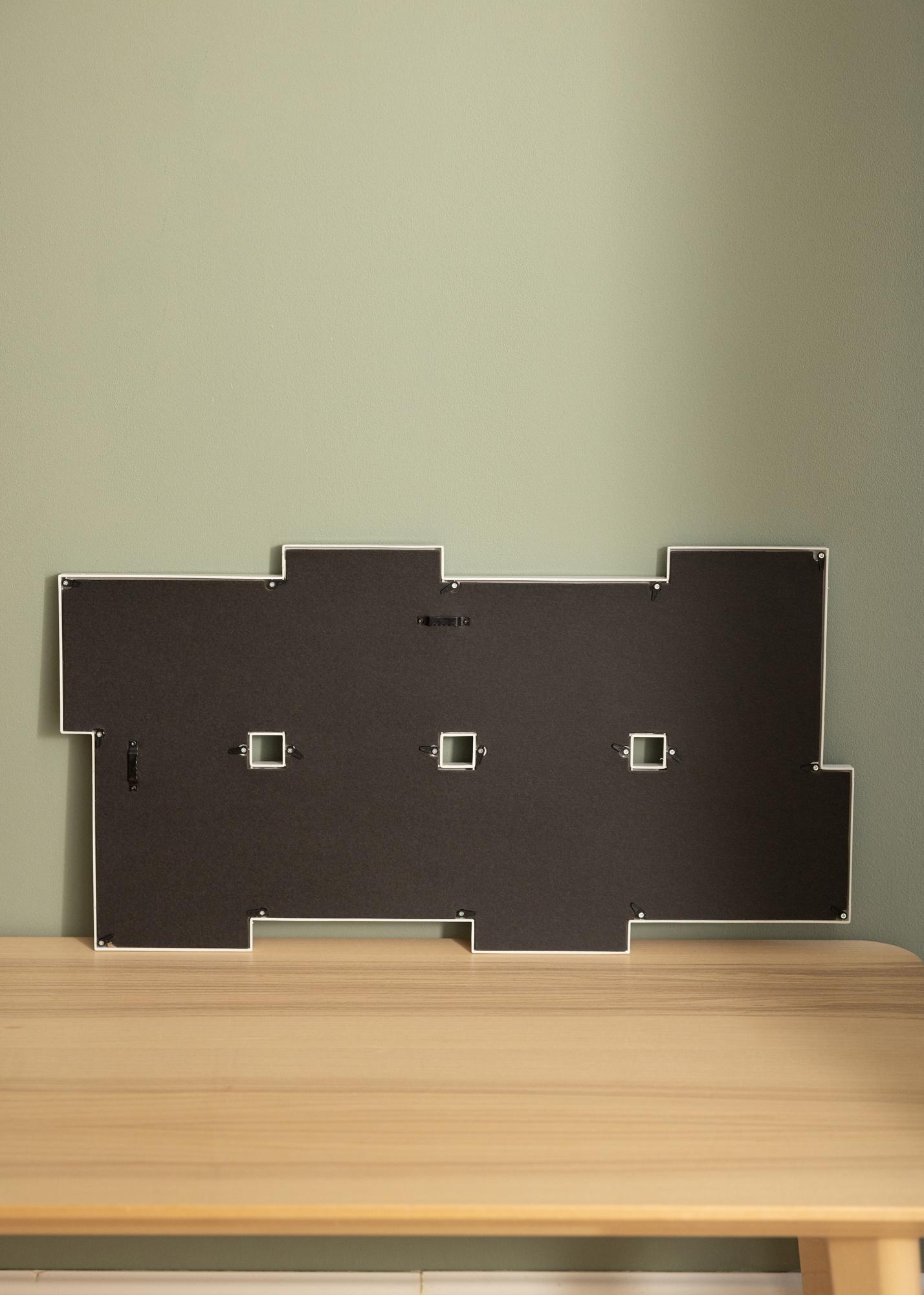 A moldura é adequada para fotos no tamanho 10x15 cm, tanto no formato retrato quanto no formato paisagem. Graças aos suportes de parede na parte de trás da moldura, ela pode ser pendurada na parede tanto verticalmente quanto horizontalmente.