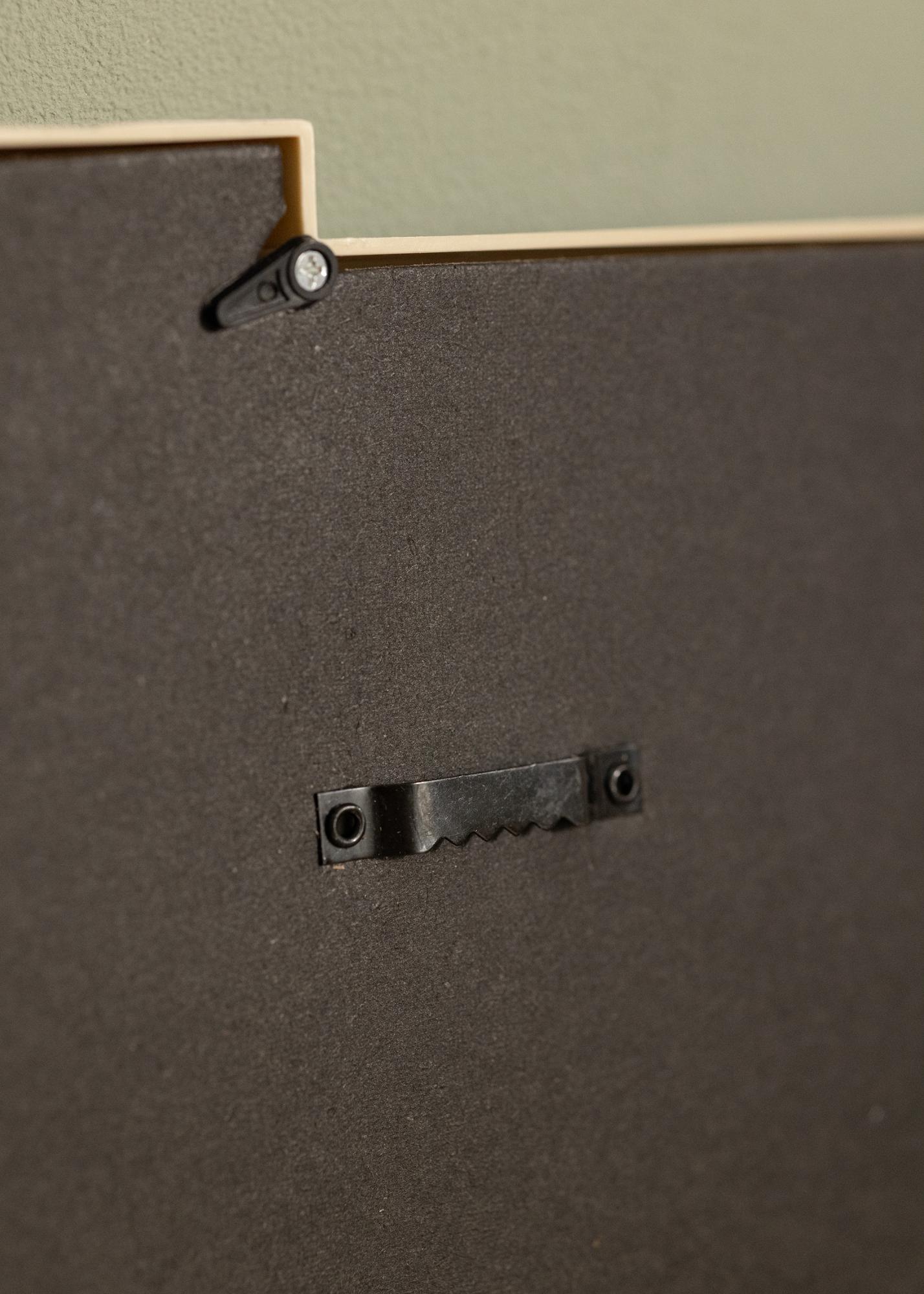 A moldura tem apenas uma grande peça traseira, o que permite que monte todas as fotos na moldura de uma vez. Na parte de trás da moldura, também há suportes de parede para montagem tanto na posição vertical quanto na horizontal.