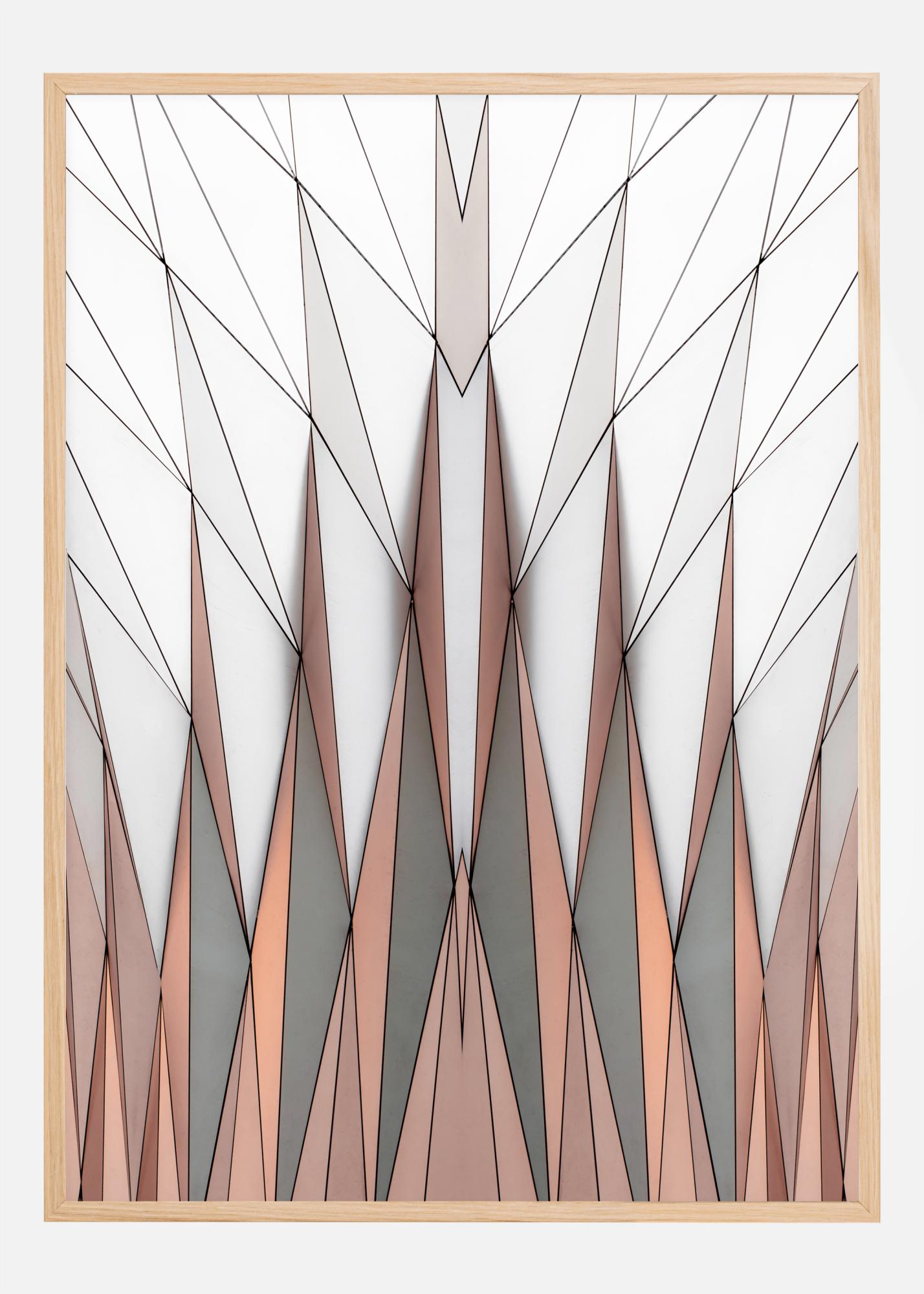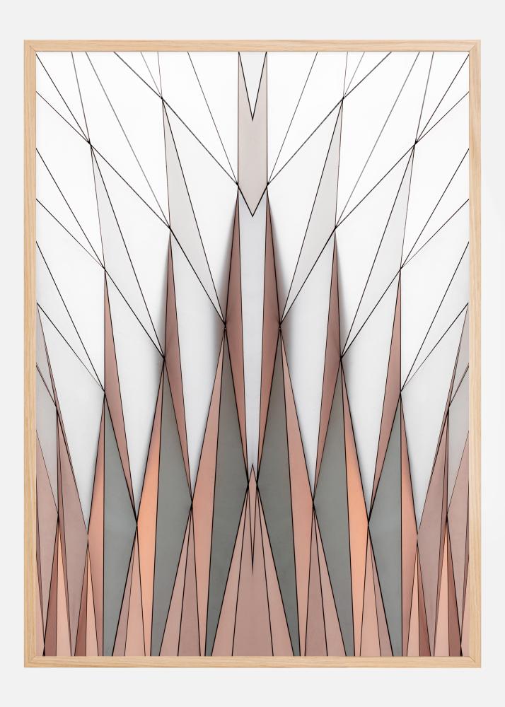Uma bela impressão de triângulos. Os triângulos laranja e cinzento estão localizados na parte inferior da impressão e apontam para cima. No entanto, os triângulos em forma de diamante restantes cobrem a metade superior da impressão. Um póster incrível quando quer ter uma sensação de espaço. Perfeito para uma parede da sala de estar.