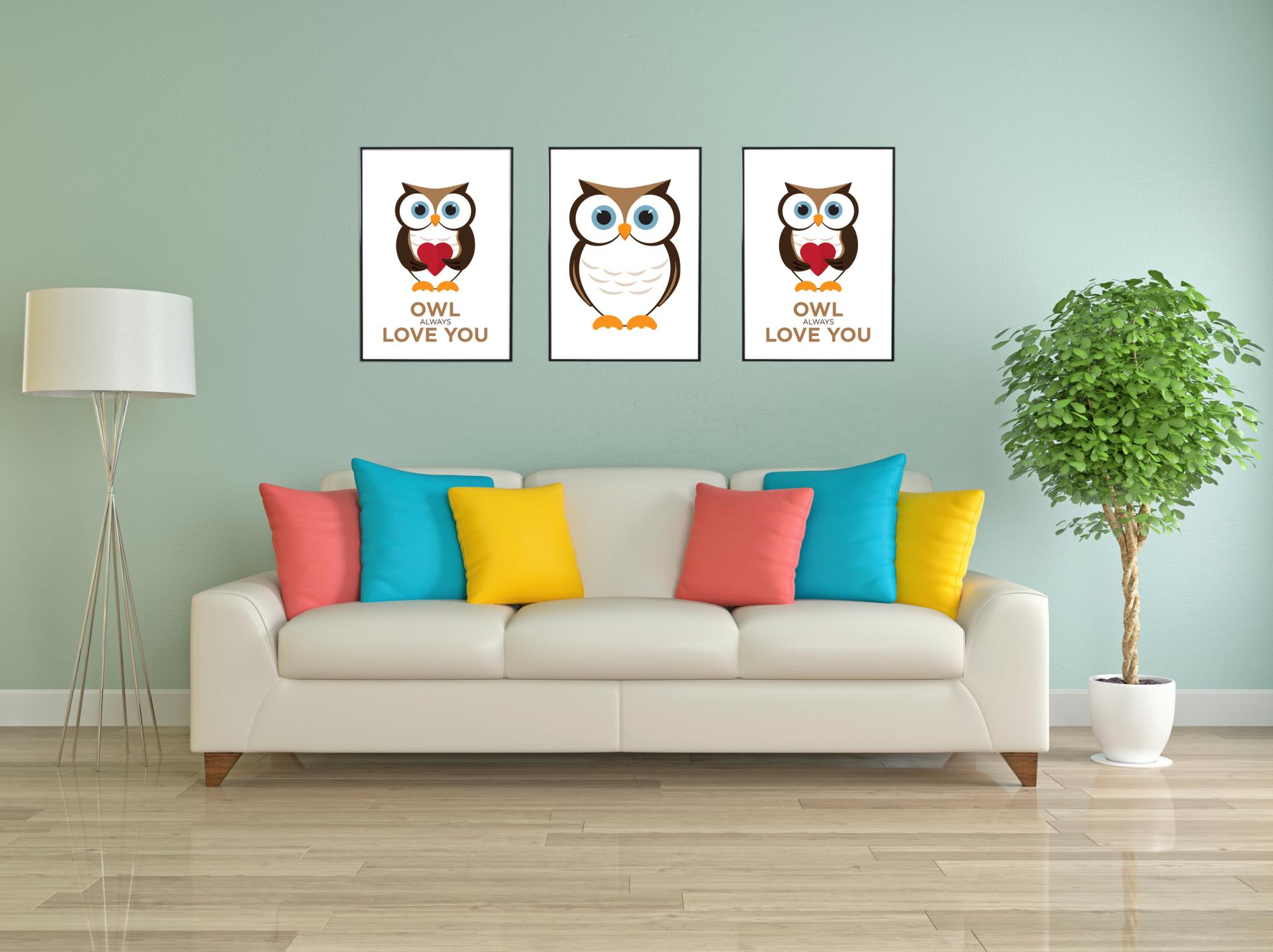 pósteres de corujas para o quarto das crianças ou para presentear um amante especial desses pássaros. A impressão gráfica combina com a sua expressão elegante e cores suaves em todos os estilos de decoração. Emoldure o póster com uma moldura que realce uma das cores da imagem ou escolha uma moldura que combine com as outras decorações da parede. Pendure o quadro junto com outras impressões gráficas para criar uma parede interessante que se torna um ponto focal no ambiente.