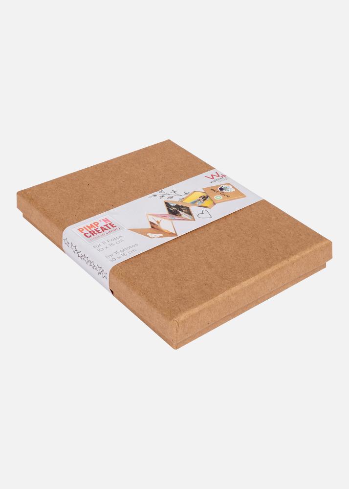 PAC Leporello-Box Marrom é um elegante álbum sanfonado projetado para acomodar 11 fotos no tamanho 10x15 cm. A capa é feita de papel artesanal marrom com um interior marrom correspondente, o que confere uma sensação clássica e atemporal. Este álbum é perfeito para colecionar e exibir suas memórias de maneira estilosa.
