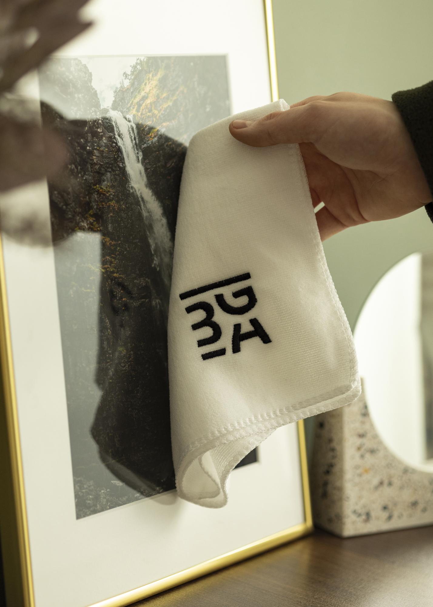 Perfeito quando quer facilmente remover manchas e impressões digitais do vidro nas suas molduras e espelhos. Também é adequado para vidro antirreflexo, pois o pano de limpeza é desenvolvido pela Groglass, que também fabrica nosso vidro antirreflexo.