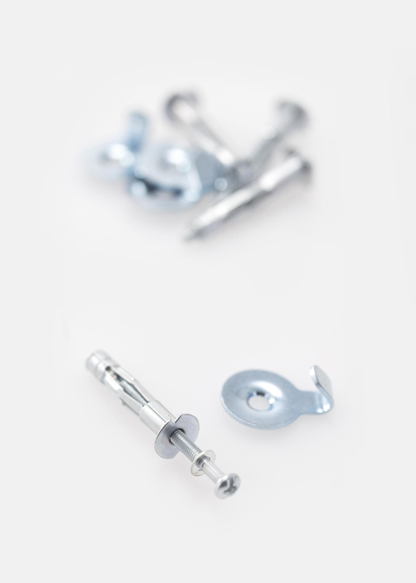 4 buchas de parede e parafusos M4 para paredes de gesso de 13 mm. A ranhura na bucha de parede é adequado para um parafuso de 6 mm.