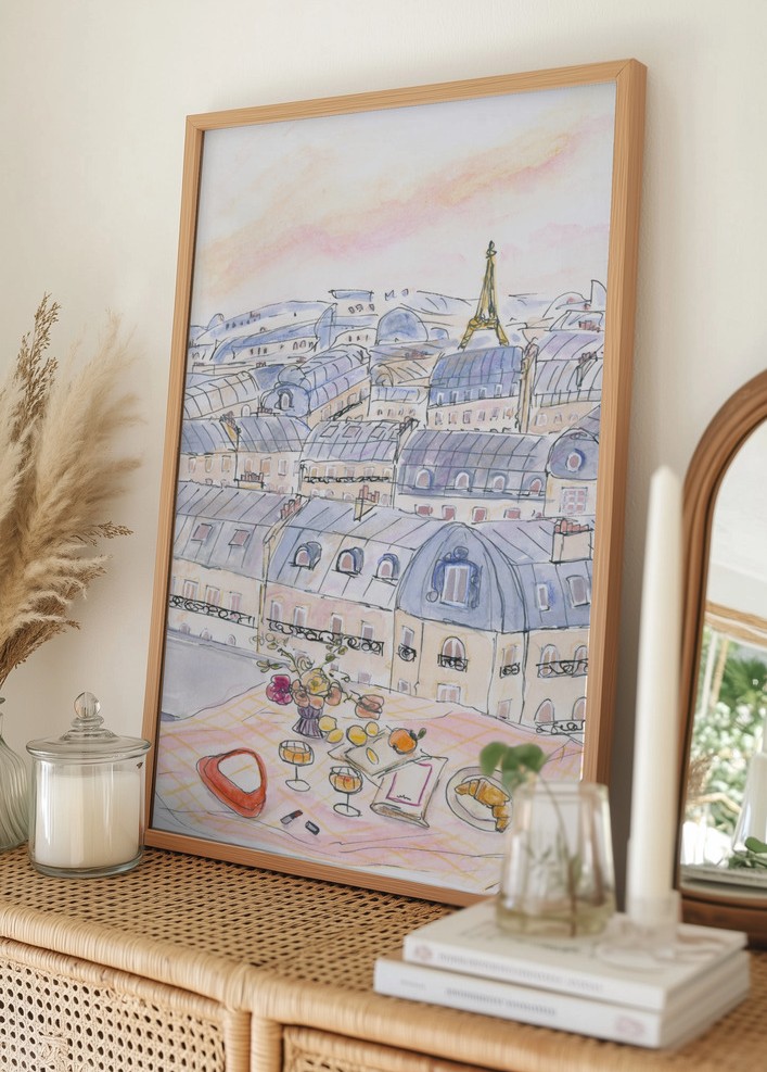 Parisian Rooftop Picnic With Eiffel Tower Views Póster (21x29.7 cm (A4))