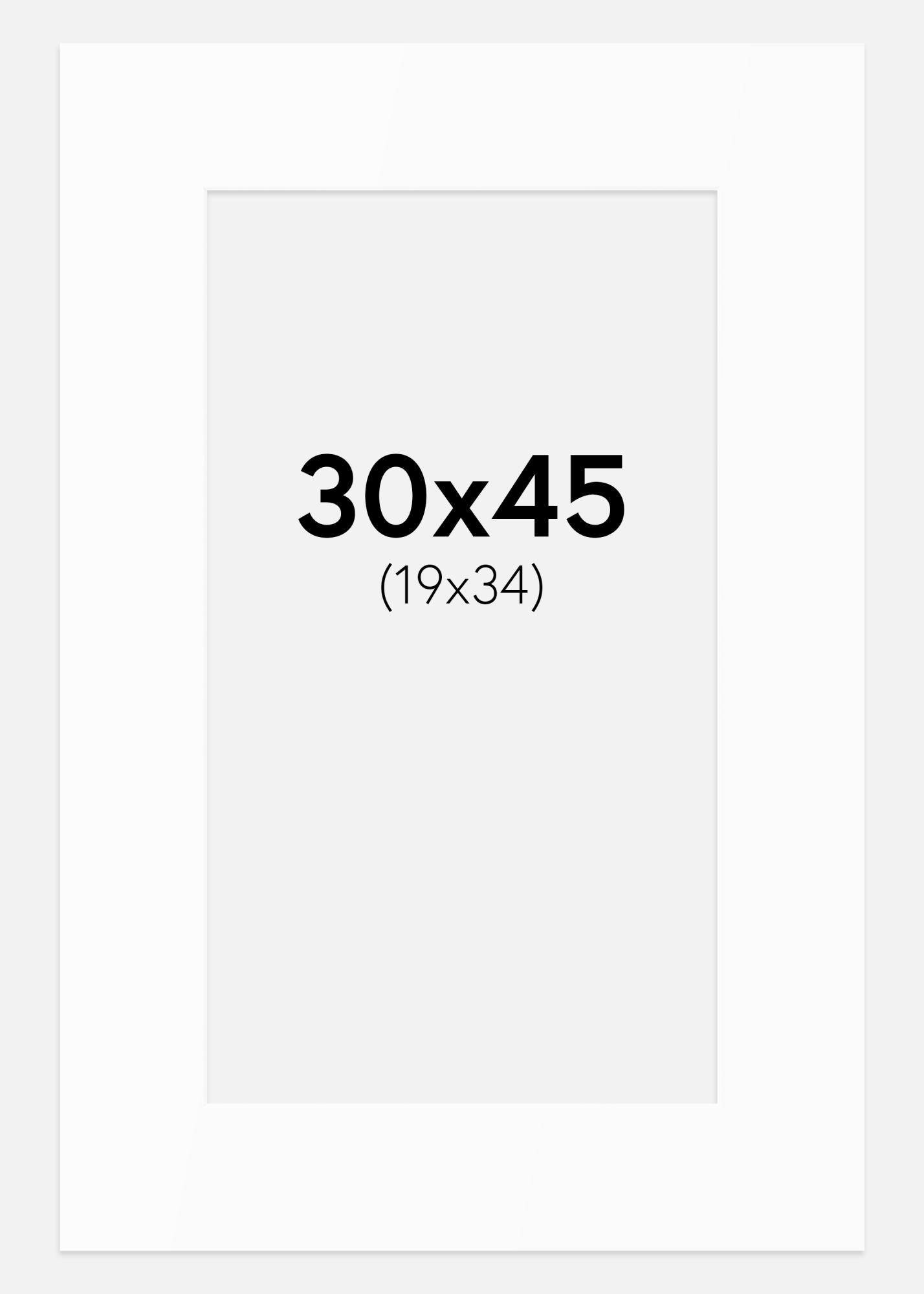 Esta elegante passe-partout em tom branco é a escolha perfeita para realçar suas fotos e obras de arte. Com uma abertura interna que se adapta a imagens no tamanho 20x35 cm e uma dimensão externa de 30x45 cm, oferece uma bela moldura que dá aos seus temas o espaço que merecem.