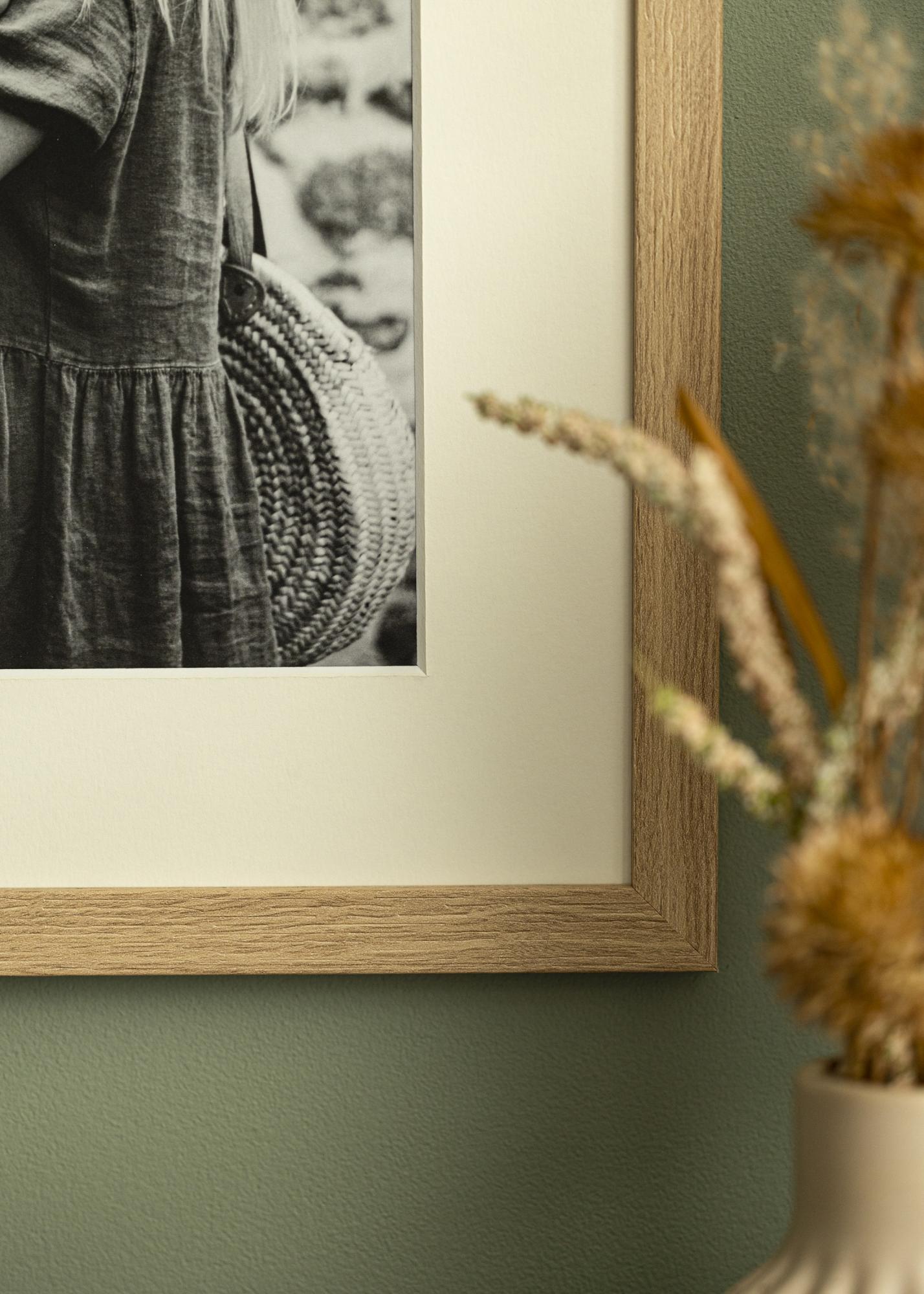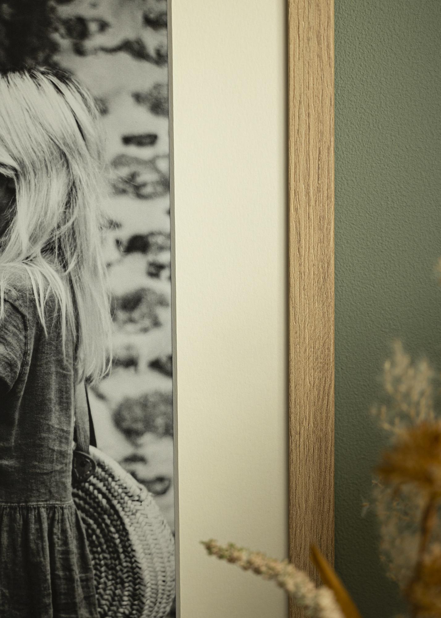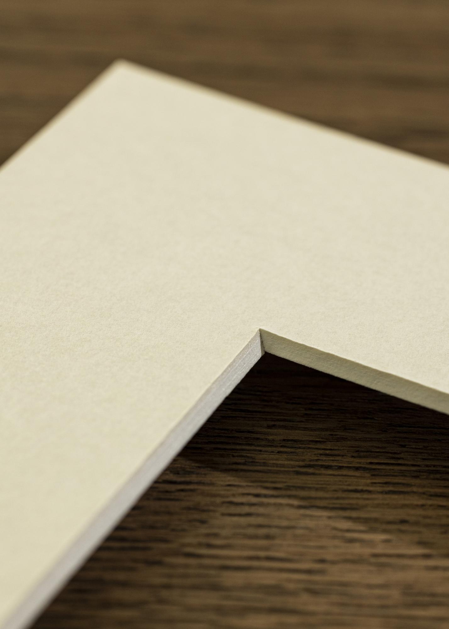 Um passe-partout offwhite é branco com um tom de creme. Por não ser tão branco quanto um passe-partout branco comum, ele proporciona uma impressão mais suave. na nossa escala de cores, ele é o número 3 dos passe-partouts brancos. O mais branco é o branco giz, seguido do branco padrão comum e, em seguida, este.