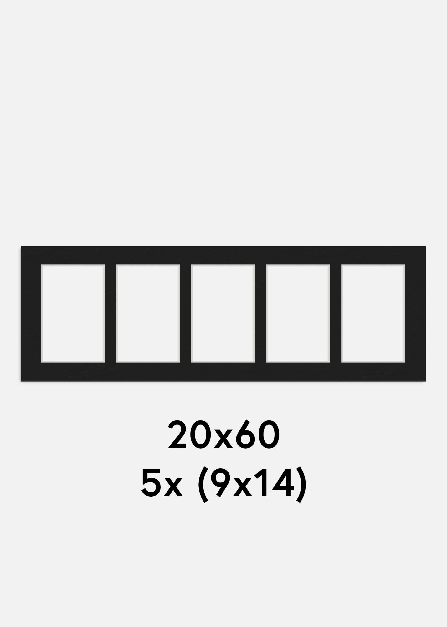 Passe-partout Preto 20x60 cm - Passe-partout para conjunto de 5 fotos (9x14 cm)