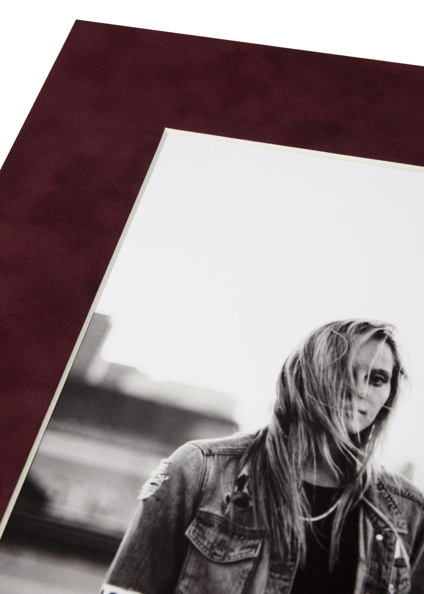 Este luxuoso passe-partout com sensação de camurça tem um belo tom vermelho escuro. Não é tão comum, mas é ainda mais especial! Além disso, o passe-partout é livre de ácido e pH neutro.