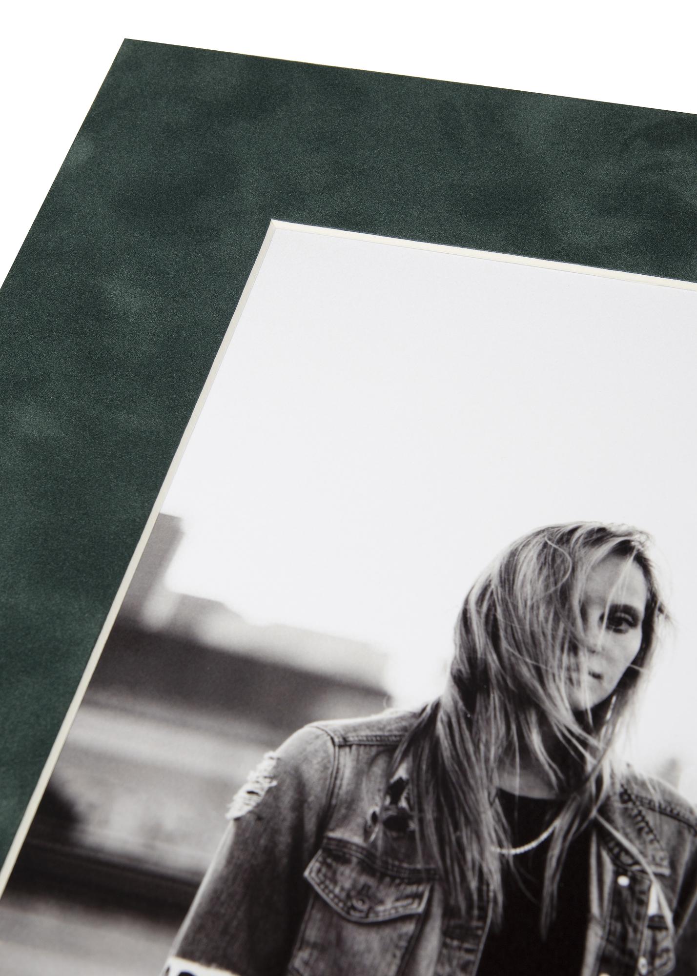 O passe-partout Suede Pine tem um elegante tom verde e uma sensação agradável de camurça, criando um emolduramento elegante e luxuoso para a sua imagem.