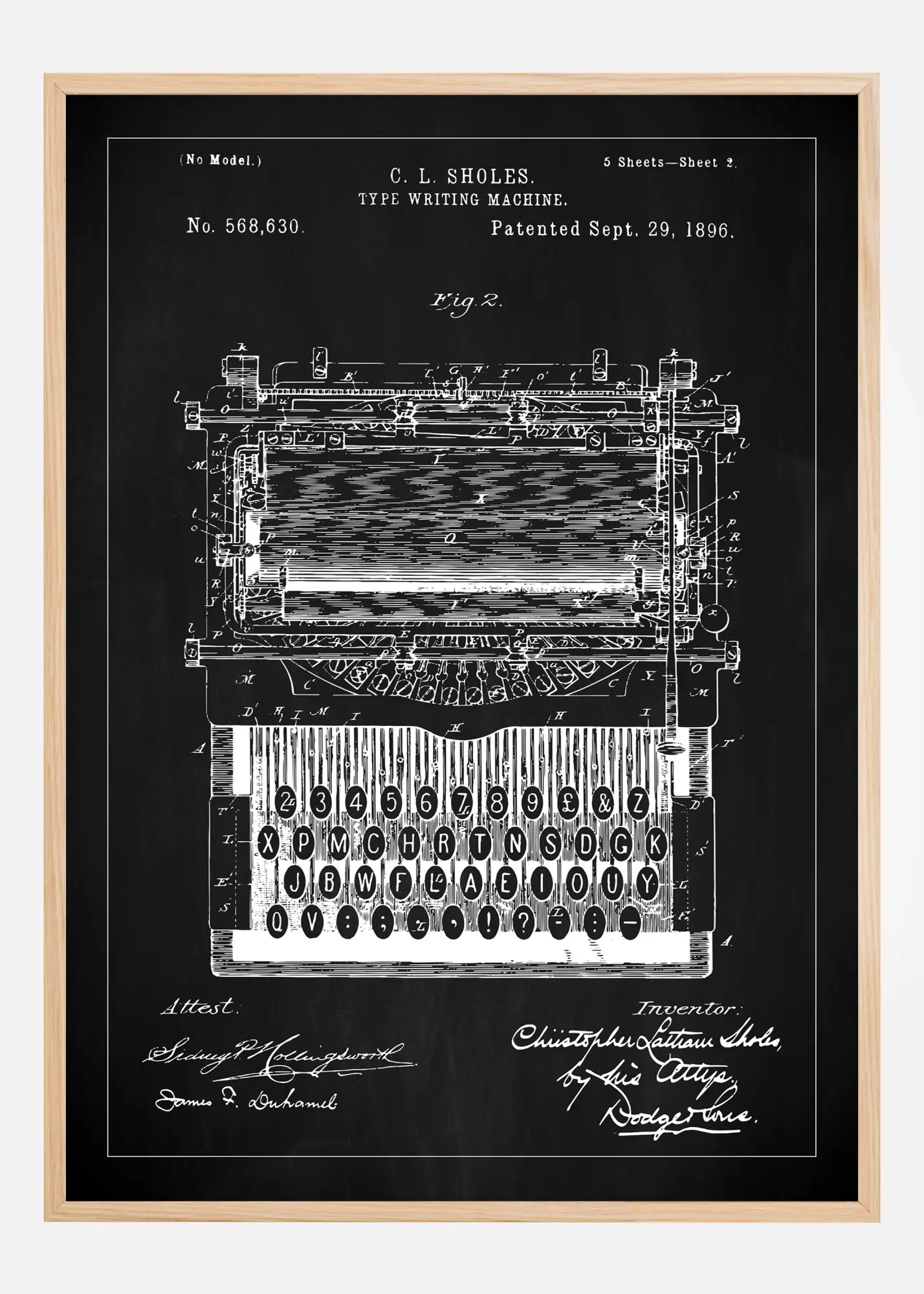 Desenho de patentes - Máquina de escrever - Preto Póster