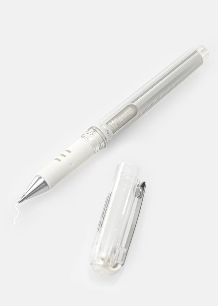 Caneta da Pentel em cor branca. A caneta tem uma largura de ponta de 1 mm.