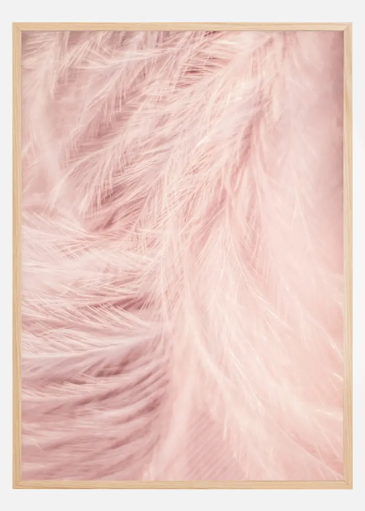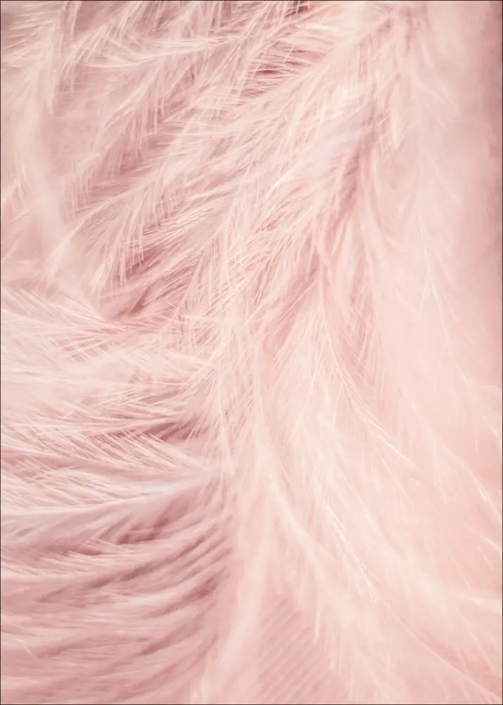 Um lindo póster de close-up com penas rosa suaves. Graças à luz intensa que ilumina as penas, não está claro se as penas são realmente rosa ou brancas. Será que é uma luz rosa refletindo nas penas? Pendure isso em sua casa para uma sensação suave e acolhedora.