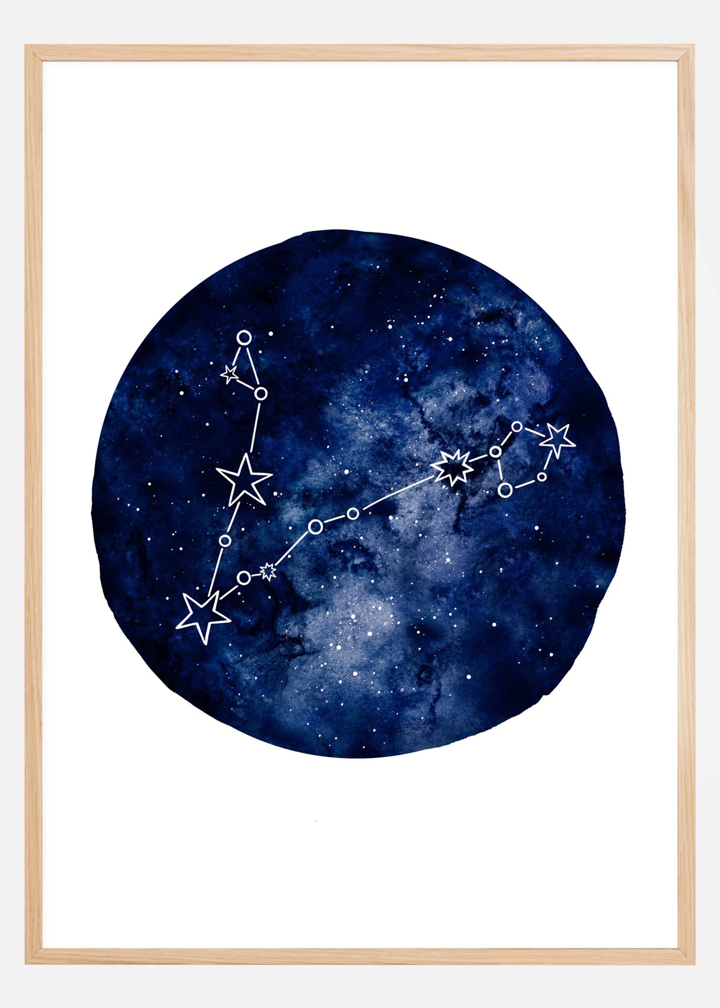 Uma impressionante impressão astrológica que ilustra o signo de Peixes. Num fundo branco, a imagem escura das constelações é destacada claramente em branco com cinco estrelas. Um póster fascinante para todos os interessados em astrologia ou astronomia. Uma impressão perfeita para pendurar em seu escritório.