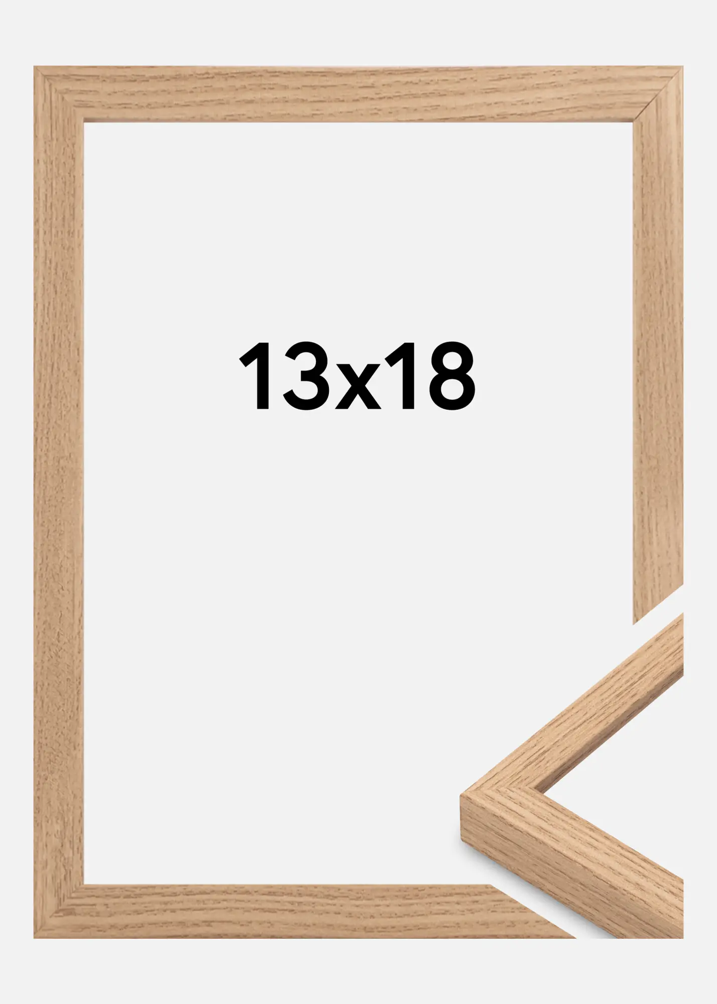 Esta moldura de madeira de carvalho é uma combinação perfeita de estilo e funcionalidade. Com o seu tamanho de 13x18 cm, é ideal para destacar as suas fotografias ou obras de arte favoritas. A imitação clara de carvalho oferece uma sensação quente e natural, permitindo que a moldura se integre na maioria dos estilos de decoração. Além disso, possui uma leve granulação que imita carvalho verdadeiro, criando uma impressão viva e harmoniosa.
