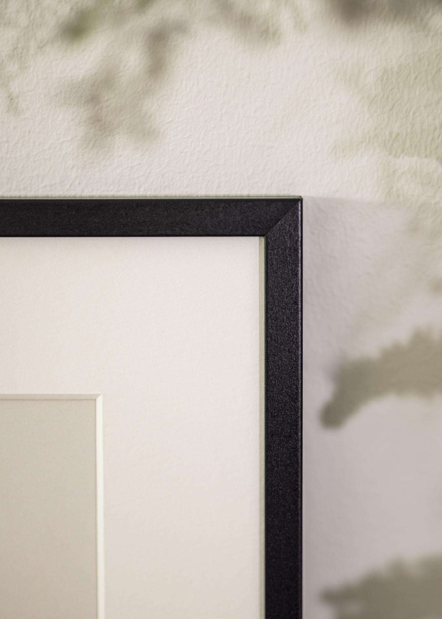 A moldura é feita de madeira e possui uma largura de 12 mm e uma profundidade de 16 mm. Isto proporciona uma sensação estável e robusta, ao mesmo tempo que mantém um perfil esguio. A cor preta confere uma elegância intemporal que se adapta à maioria dos estilos de decoração.