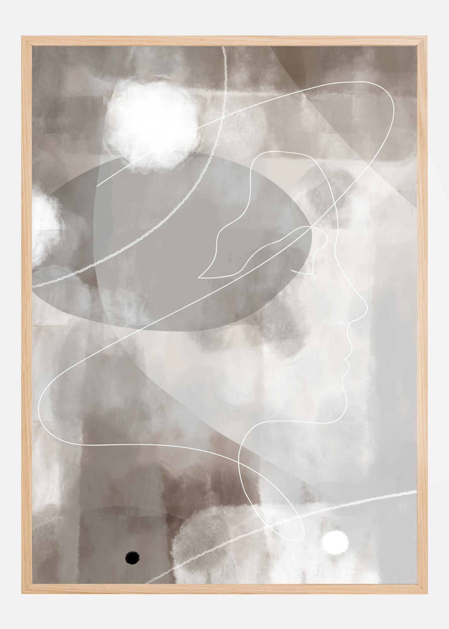 Uma obra de arte que ilustra uma mulher usando um chapéu. Esta bela impressão em perfil foi habilmente desenhada sem nunca levantar o pincel da impressão. O contorno da mulher é colocado num fundo marrom claro com algumas nuvens brancas na parte superior da impressão. Um belo póster para o quarto de uma mulher.