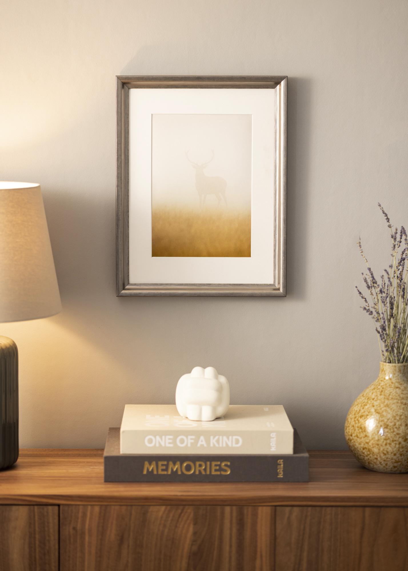 moldura para quadros em um tom de prata cinzento grafite que dá vida às suas fotos de retrato. Com o seu tom de cor agradável, esta é uma moldura feita por medida que funciona em qualquer lugar.