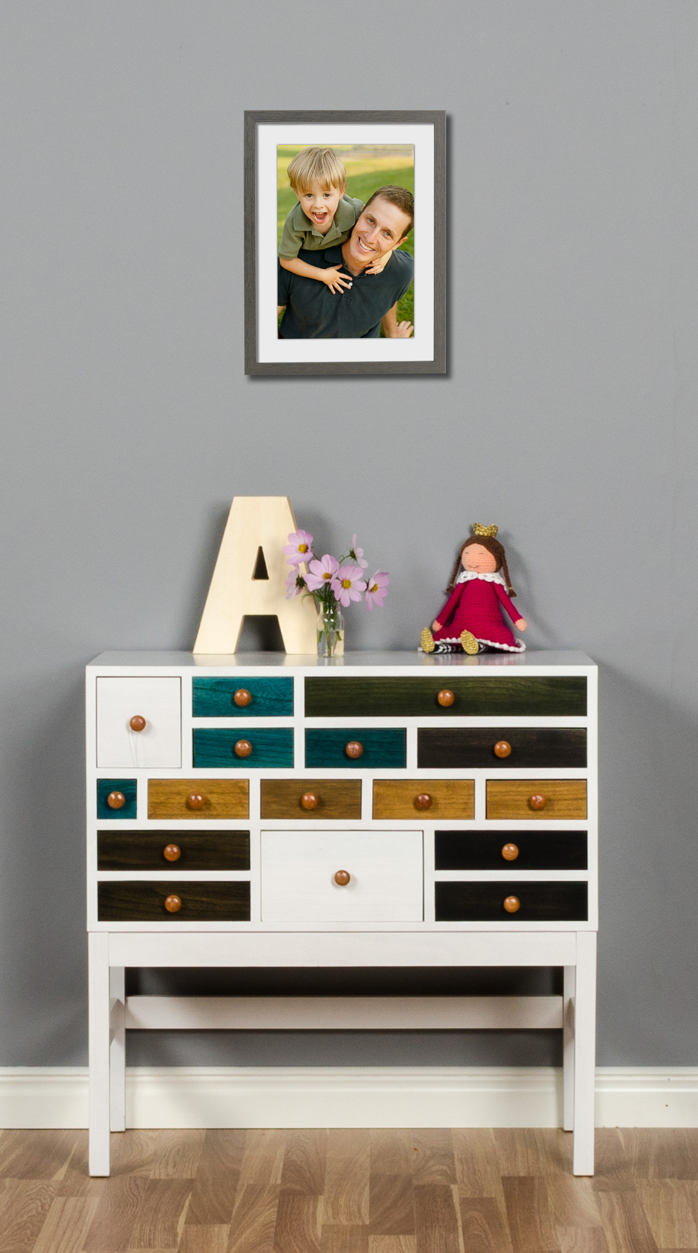 Dê personalidade às suas imagens ao usar esta moldura para quadros texturizada! A cor da moldura é semi-transparente, o que permite que o padrão de madeira se destaque e torne a impressão mais emocionante. O acabamento é de um modelo elegante que se integra perfeitamente na maioria dos interiores. Naturalmente, o verso é livre de ácido e, portanto, pode ter a certeza de que a sua foto permanecerá bonita por muitos anos. A moldura é fabricada por funcionários experientes na nossa própria oficina de molduras.