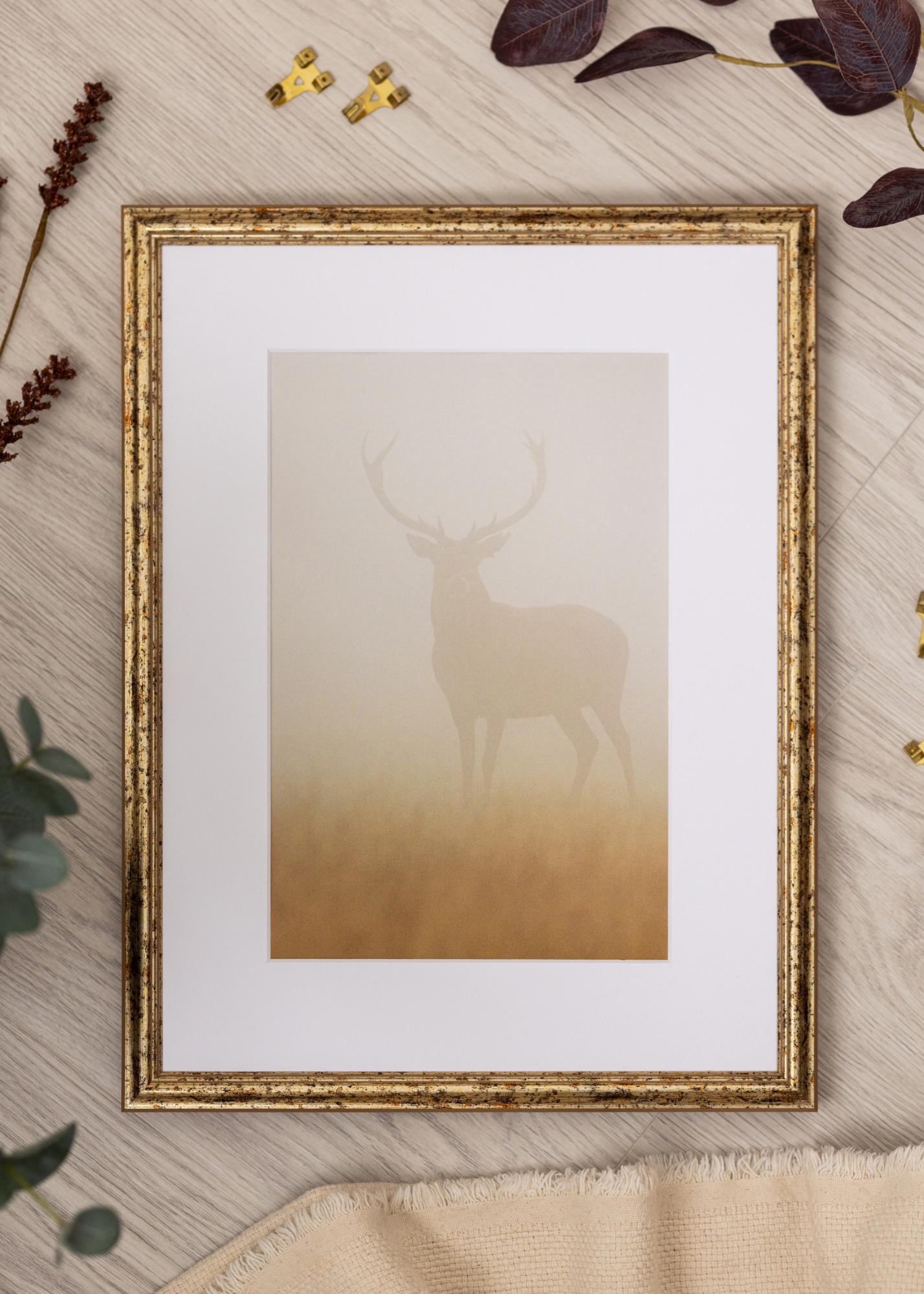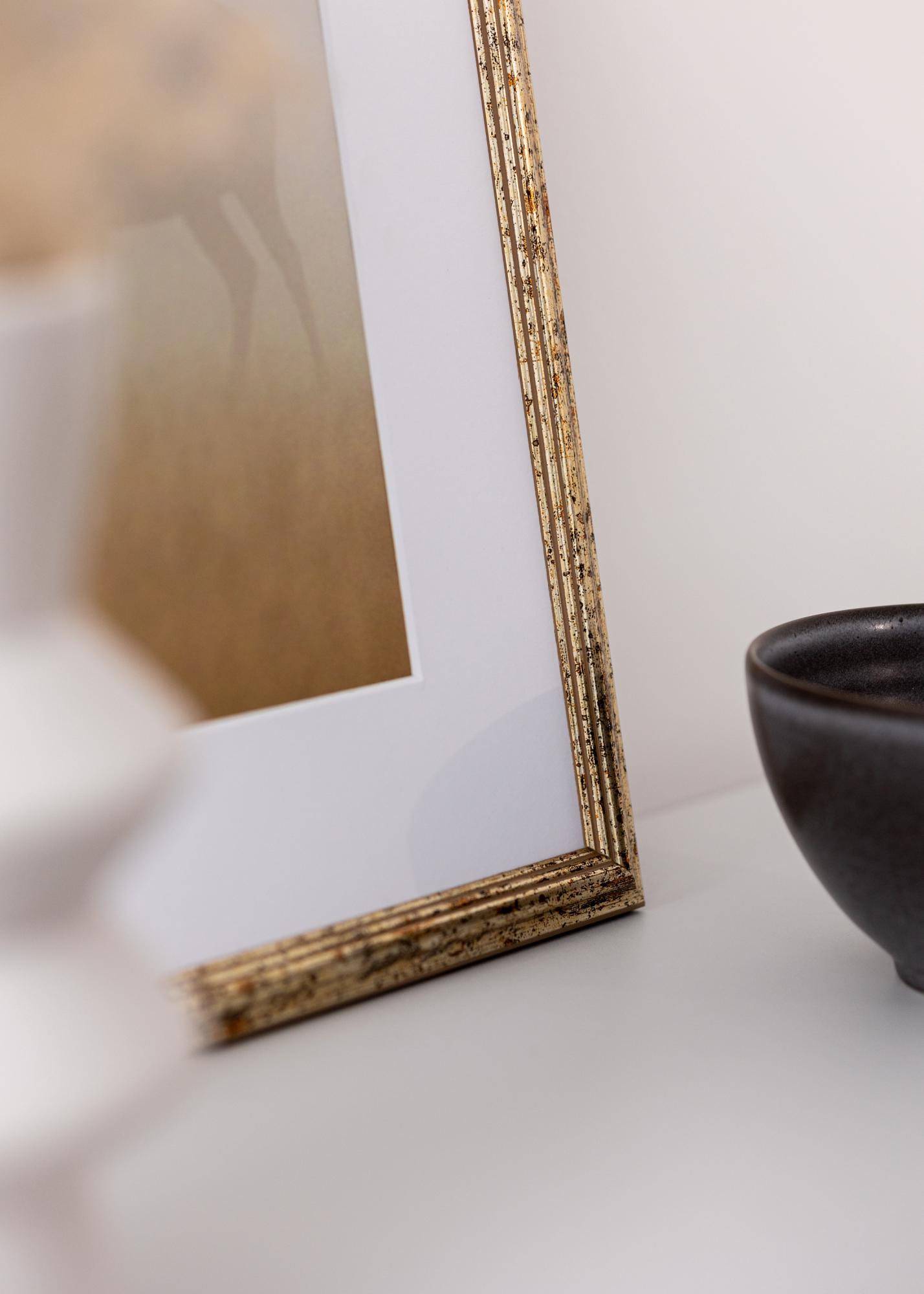 A moldura é feita de madeira e possui uma lista de moldura de 15 mm de largura e uma profundidade de 15 mm, o que proporciona uma sensação robusta e sólida. O design perfilado com detalhes finos e uma superfície levemente desgastada cria uma atmosfera clássica e sofisticada em sua casa. A moldura é fabricada na Itália, o que garante alta qualidade e precisão artesanal.