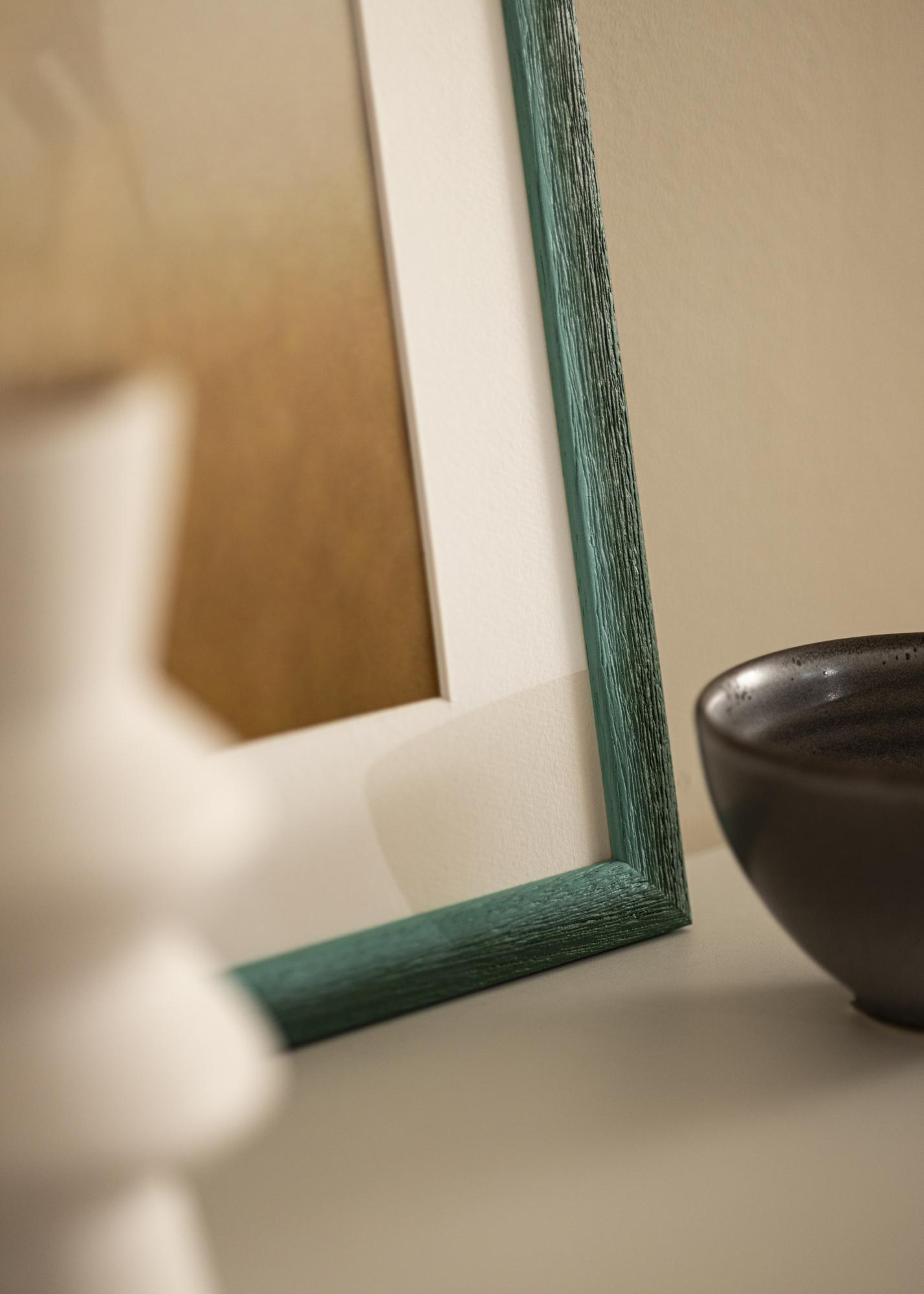 A cor verde suavizada tem variações sutis que proporcionam uma expressão vibrante e natural, enquanto a estrutura de madeira proeminente com veios profundos cria uma sensação rústica. A superfície possui um acabamento fosco que suaviza a intensidade da cor e proporciona uma impressão suave, permitindo que suas fotos realmente ganhem destaque. O perfil estreito equilibra o visual rústico com uma simplicidade moderna.