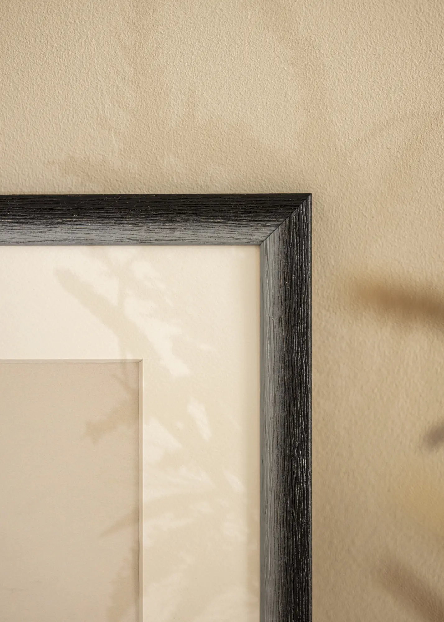 Nosso quadro por encomenda Cornwall Preto é a escolha perfeita para quem busca uma moldura elegante e dinâmica. Com uma transição de cores elegante de cinza claro para preto profundo, esta moldura oferece uma expressão sofisticada que se adapta à maioria dos ambientes. A estrutura de madeira proeminente com veios claros oferece uma sensação rústica e reforça o caráter natural do material.