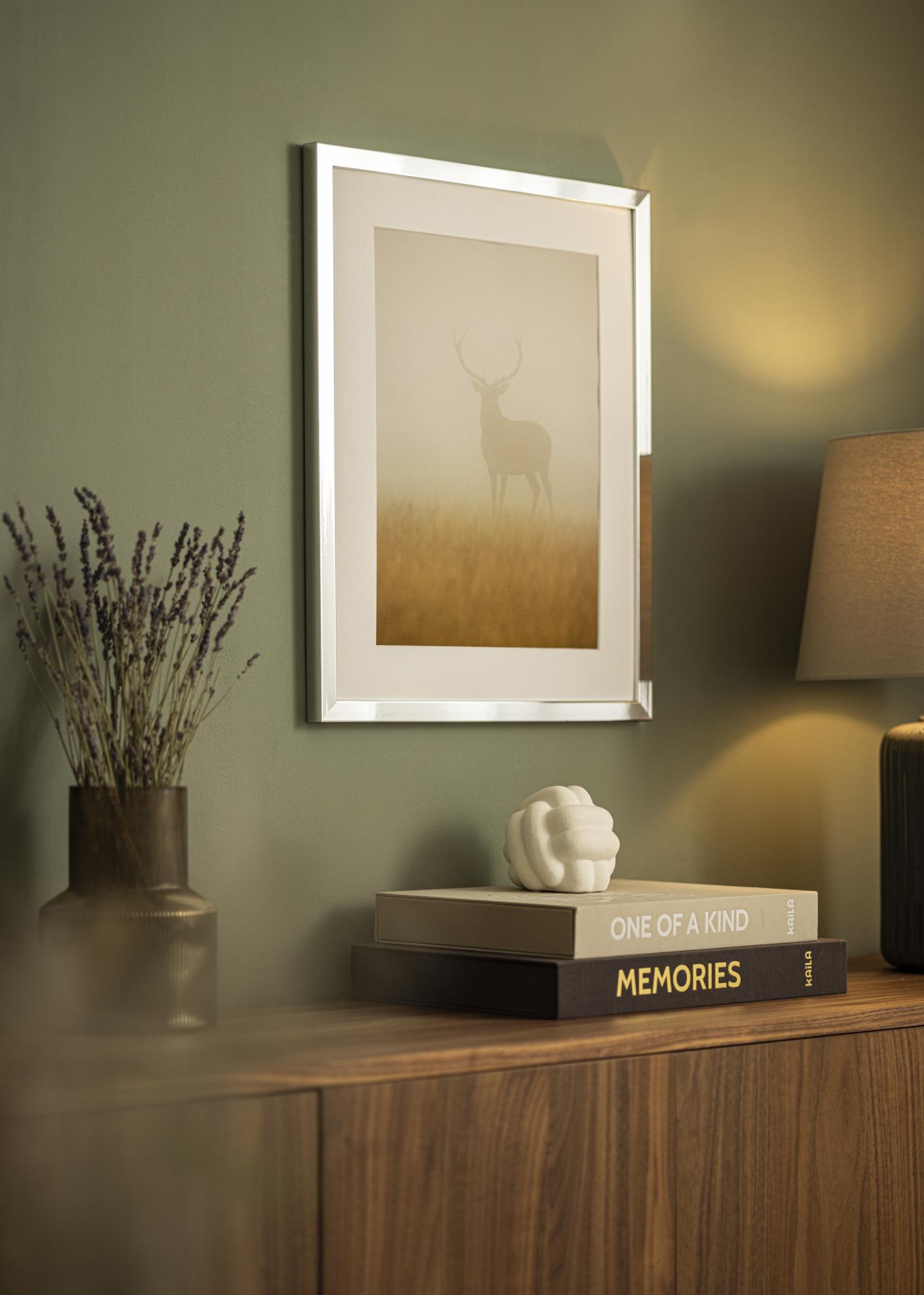Devon Silver é uma moldura personalizada que produzimos com precisão e cuidado. Com seu acabamento prateado elegante e superfície espelhada, esta moldura reflete a luz de uma maneira que cria uma sensação moderna e elegante em sua casa. A superfície metálica lisa captura o ambiente e oferece um brilho dinâmico dependendo do ângulo da luz.