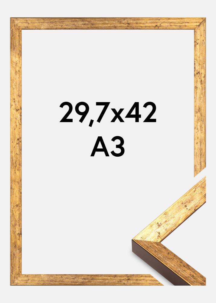 Para proteger suas imagens, a moldura possui um vidro acrílico cristalino e inquebrável. O vidro acrílico tem uma película protetora em ambos os lados que deve ser removida antes do uso para garantir a clareza ideal. Com as dimensões de 29,7 x 42 cm, esta moldura oferece um visual sofisticado que adiciona um toque quente e elegante ao seu lar. Quer você deseje exibir fotos de família ou obras de arte, esta moldura dourada dará às suas imagens a atenção que merecem.