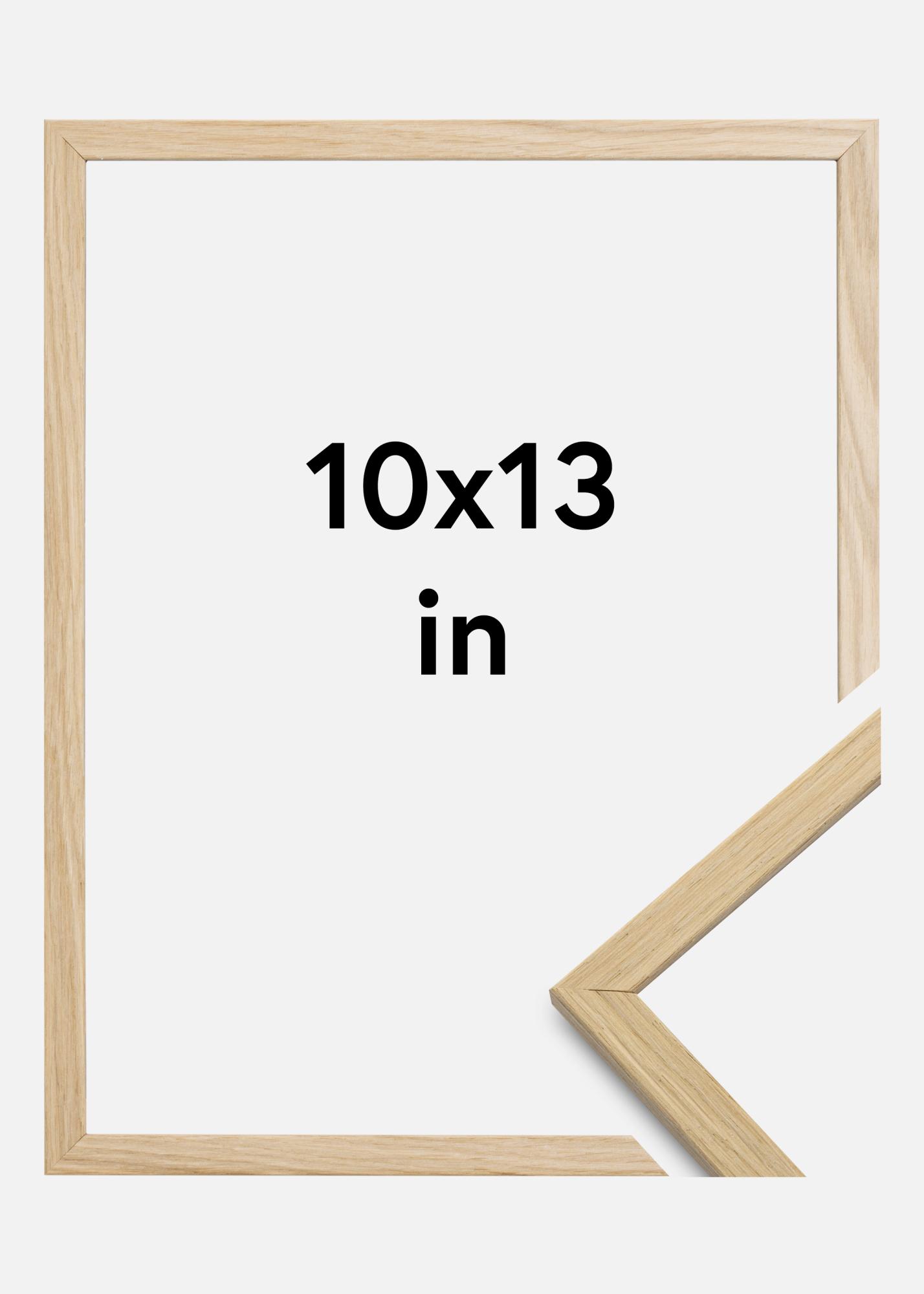 Às vezes, recebemos a pergunta de por que a moldura é feita de folheado de carvalho e não de carvalho maciço real, se ela é uma moldura de qualidade. A razão para isso é que é difícil obter uma superfície controlada quando se trata de carvalho real, pois geralmente há variações de cor em diferentes partes da madeira, o que em alguns contextos é adequado. Mas numa moldura, isso só faz com que pareça que partes da moldura estão descoloridas.