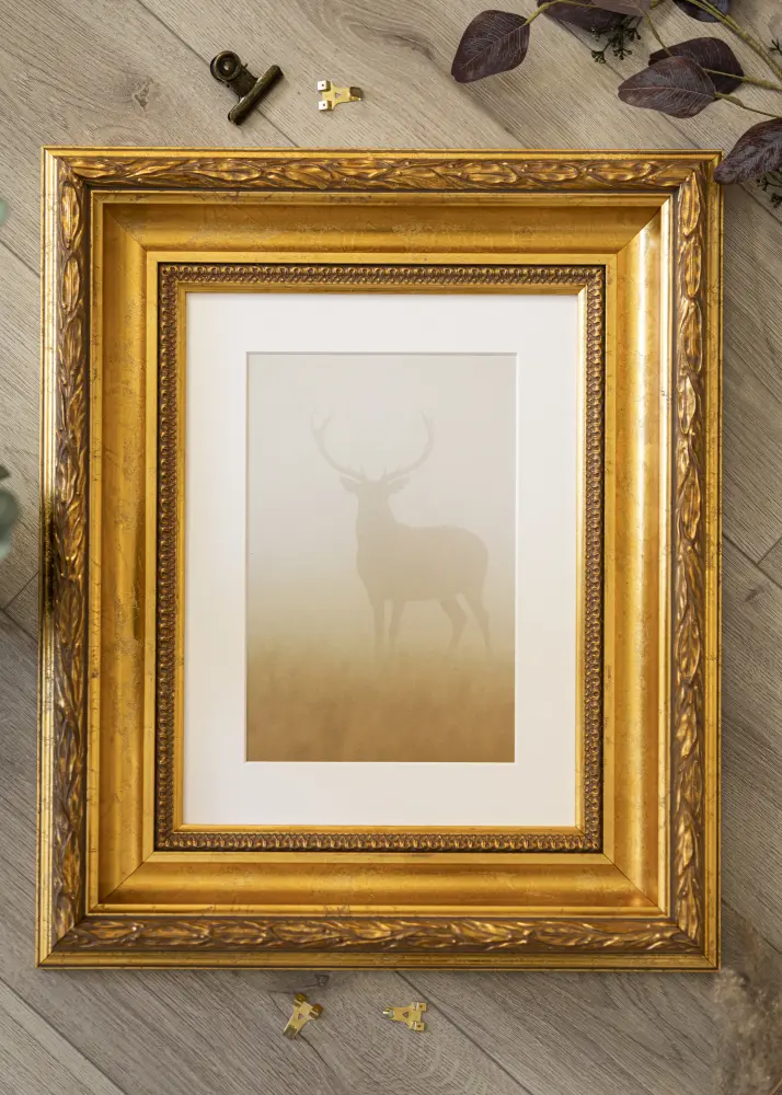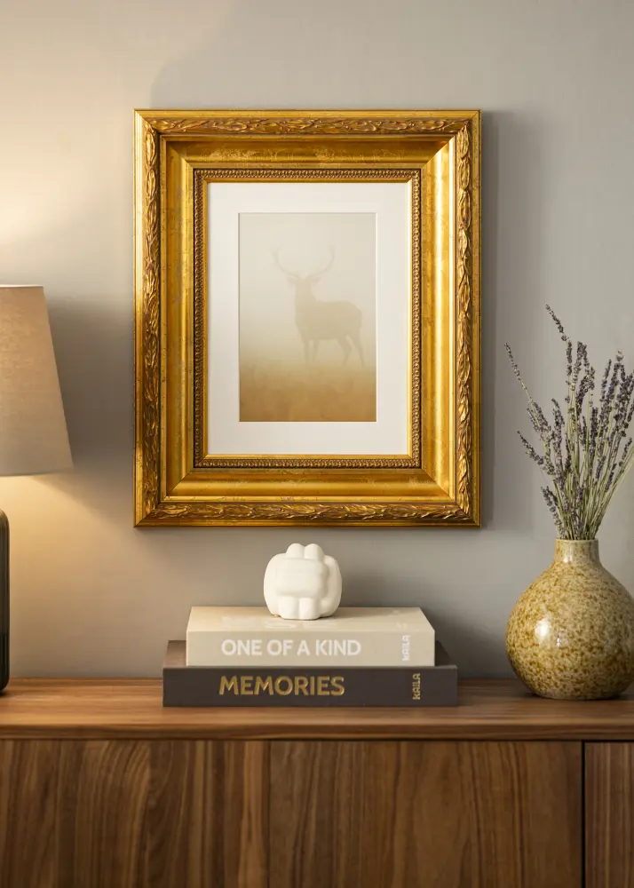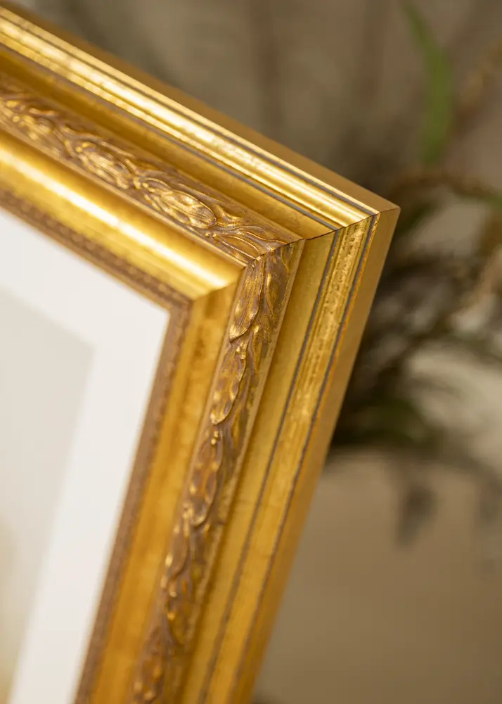 Ram Egypt Ornament Gold é feita de madeira, o que lhe confere uma sensação natural e durável. A pátina elegante realça as decorações e faz desta moldura uma excelente escolha para interiores modernos e tradicionais. Seja na sala de estar, no quarto ou no escritório, esta moldura atrairá olhares e destacará suas imagens da melhor forma.