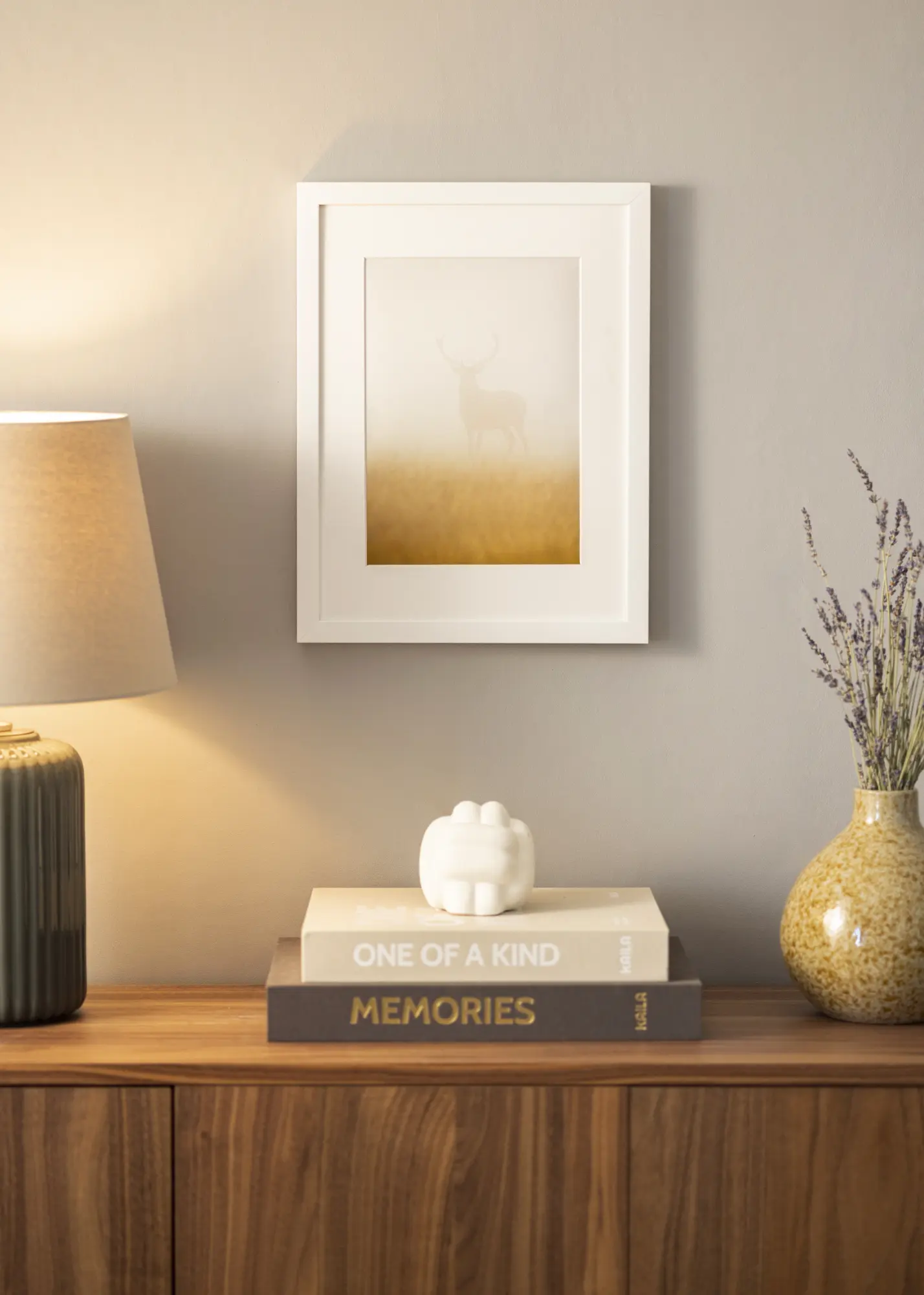 Elegant é uma elegante moldura de madeira branca com um design moderno. Perfeita quando procura uma moldura profunda e robusta que permite que a imagem se destaque um pouco do fundo.