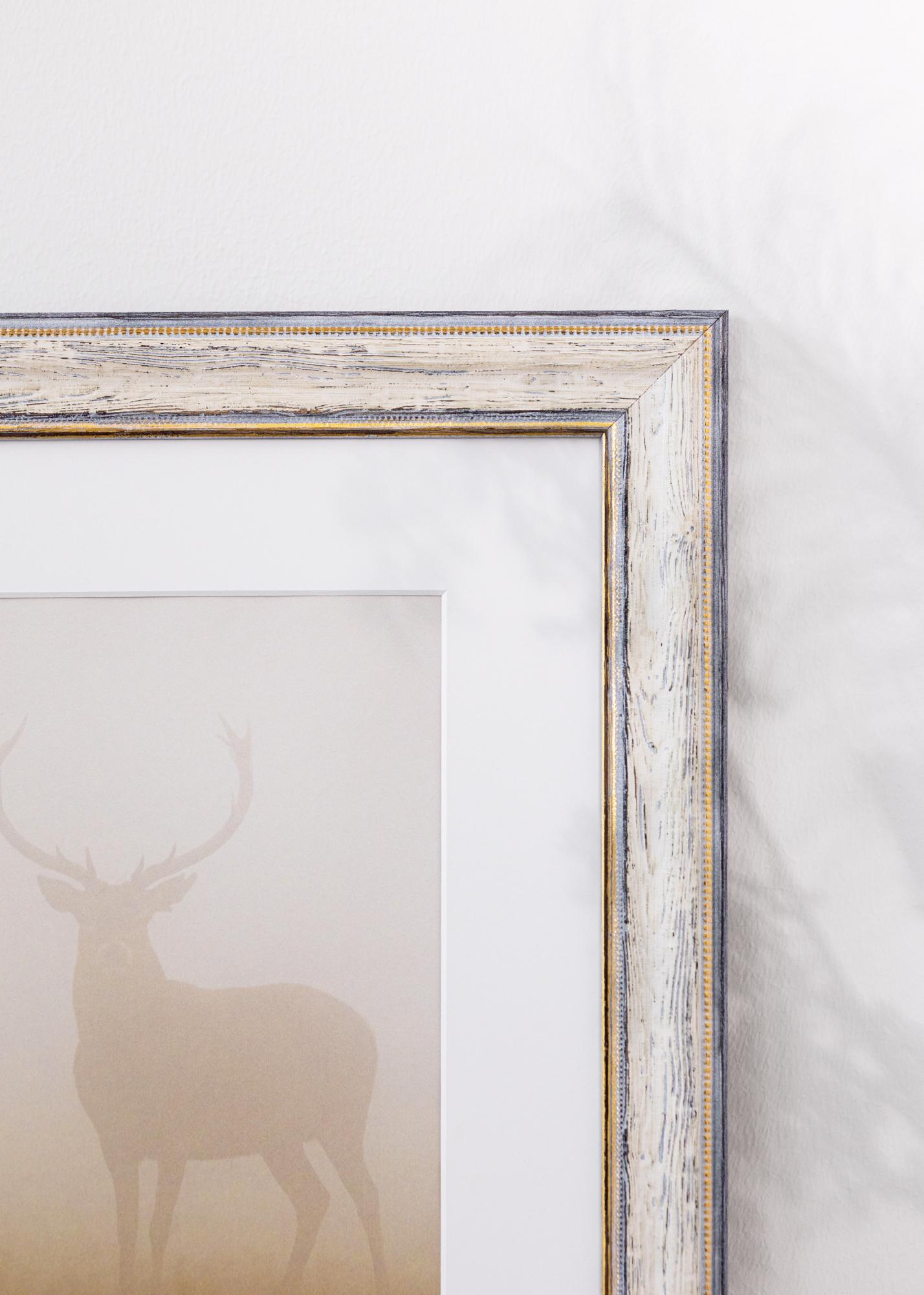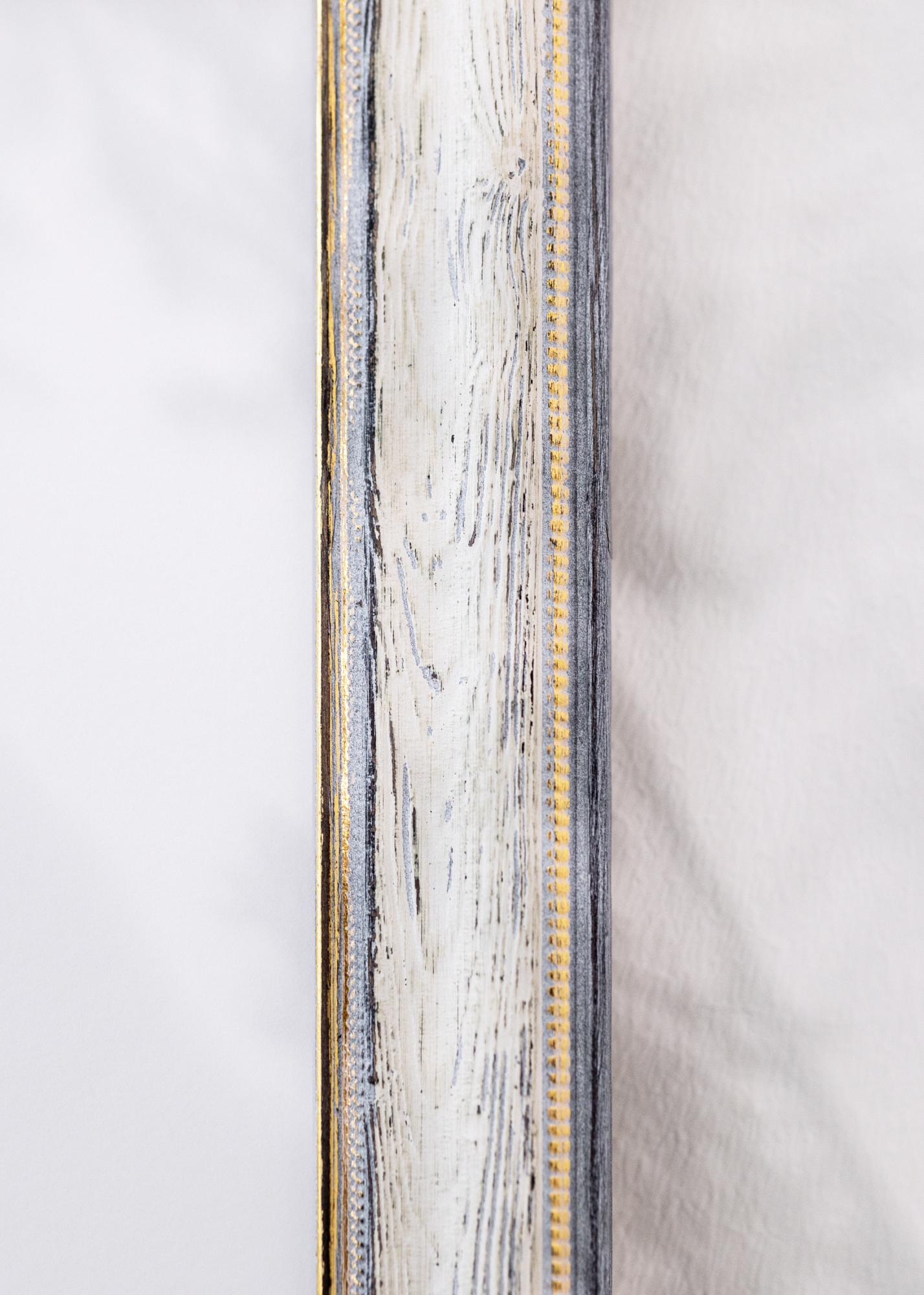Esta elegante moldura de fotografia no tamanho 29,7x42 cm é uma combinação perfeita de design vintage e moderno. Fabricada na Itália, esta moldura oferece um acabamento em madeira branca e cinza rústica que dá um visual encantadoramente envelhecido. Os sutis detalhes dourados ao longo da borda interna adicionam um toque clássico que a torna ideal para destacar suas fotografias ou obras de arte favoritas.
