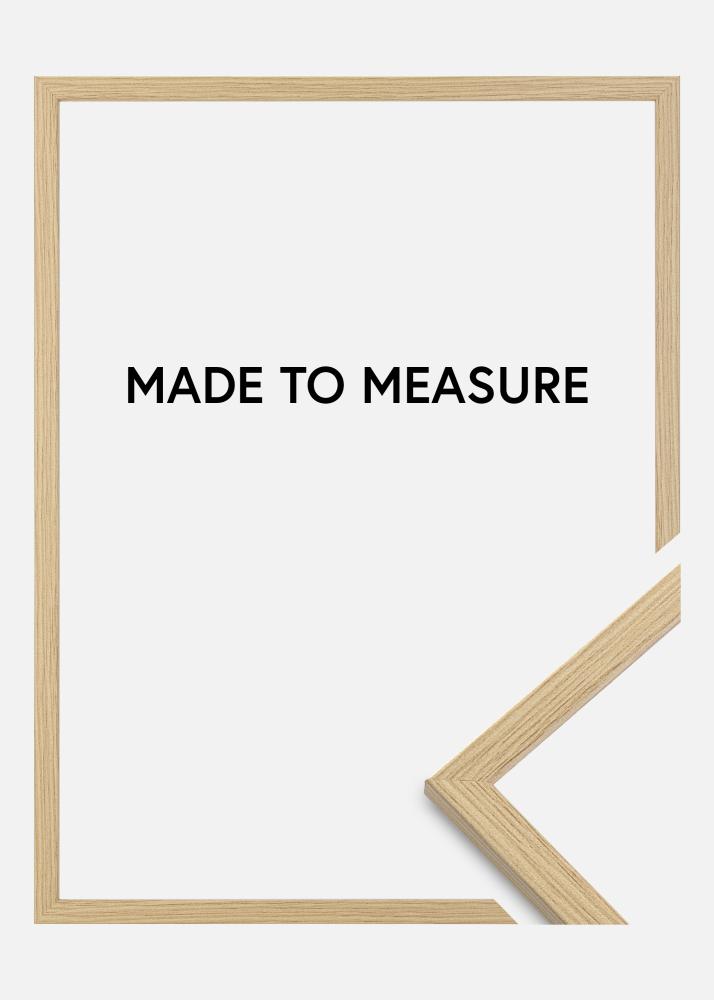 Esta é uma moldura fina que encaixa-se perfeitamente quando quer deixar todo o foco no motivo! A moldura tem 13 mm de profundidade e 13 mm de largura, o que significa que ela tem um design elegante, mas sólido. A moldura é feita de pinho e numa cor de carvalho. Na parte de trás, há suportes de parede para pendurar tanto na horizontal quanto na vertical.