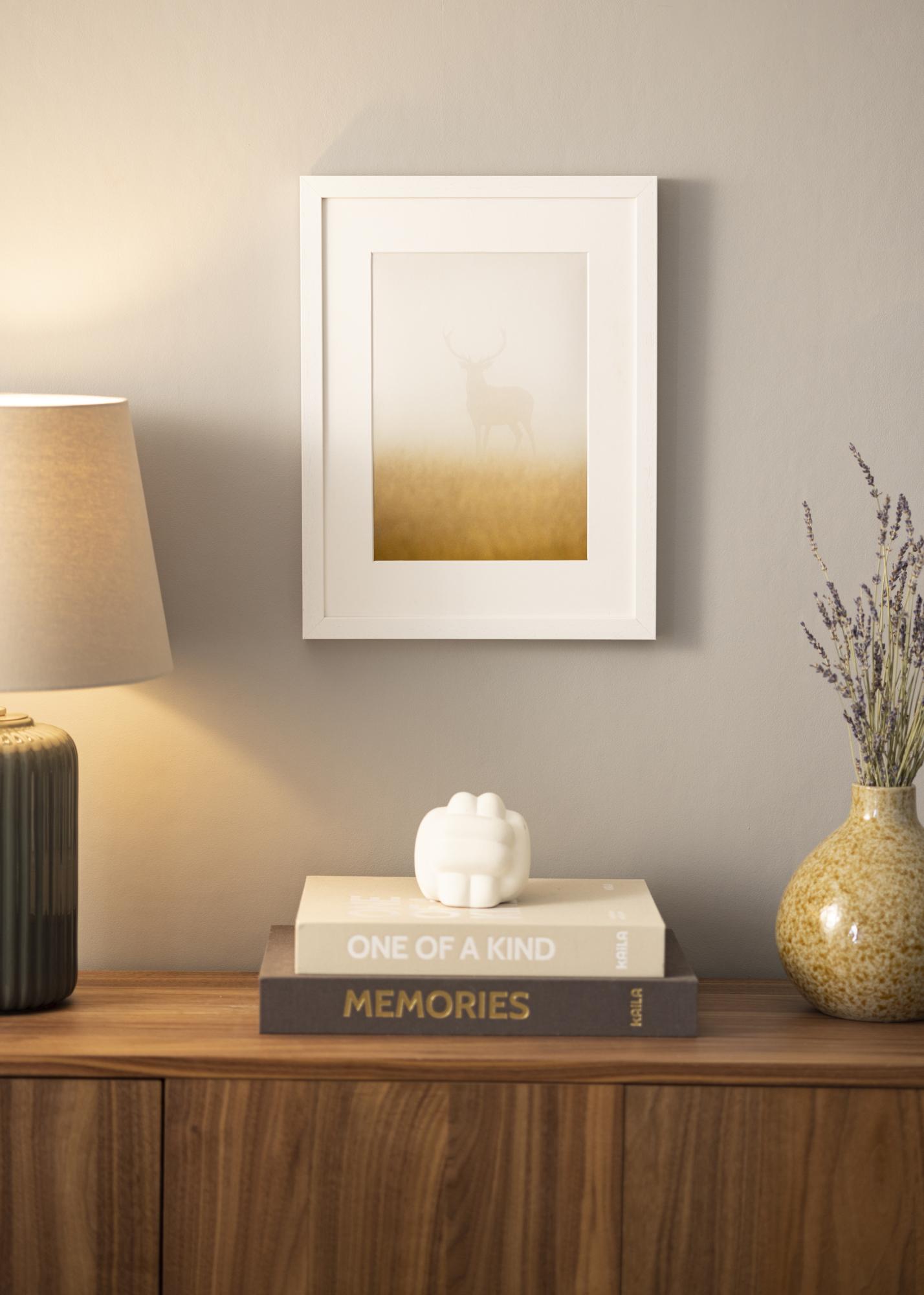 Gävle Branca é uma moldura de madeira sólida com uma profundidade de 31mm, o que faz com que a moldura se destaque da parede e permita que o motivo fique totalmente em foco.