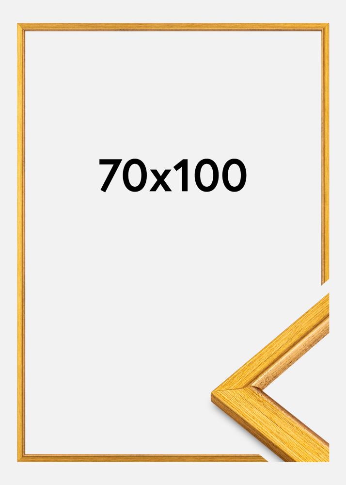 Esta elegante moldura dourada para fotos é uma combinação perfeita de estilo e funcionalidade. Com seu design levemente perfilado, oferece um toque sofisticado a qualquer ambiente. A moldura é fabricada na Itália e exala qualidade e artesanato. Foi especialmente projetada para acomodar quadros de tamanho 70x100 cm, o que a torna ideal para obras de arte ou fotografias maiores.