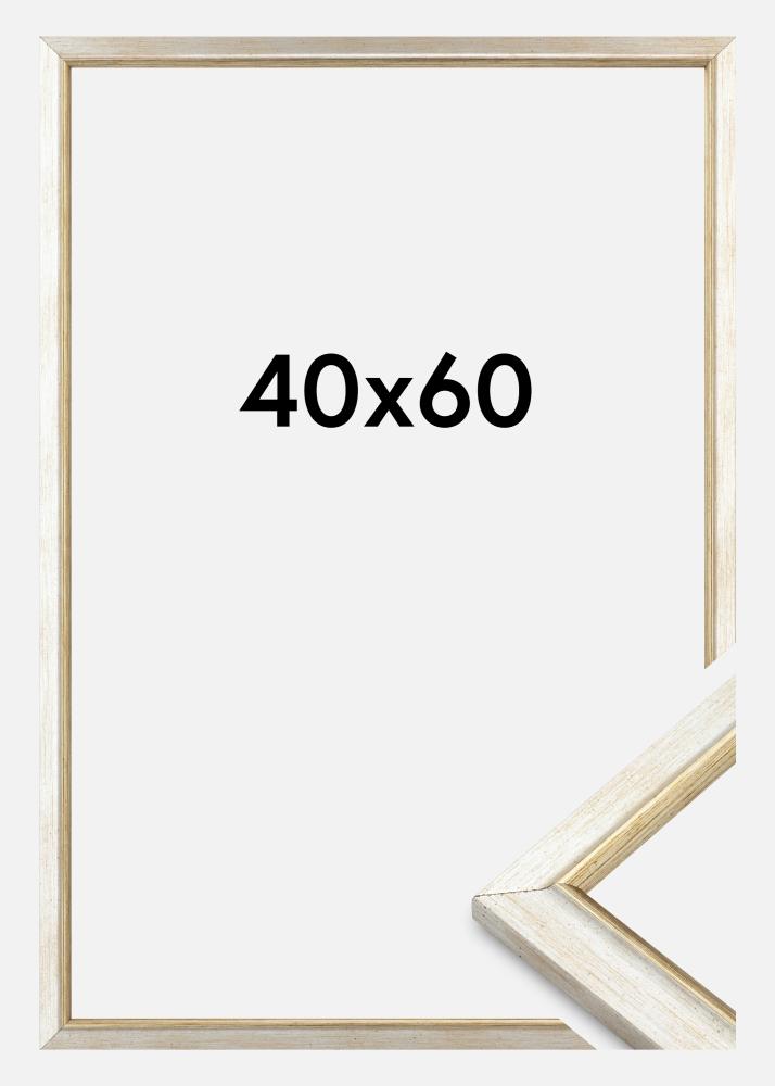 Esta elegante moldura de fotos em prata é uma combinação perfeita de design moderno e charme clássico. Com seu acabamento escovado sutil, oferece um toque sofisticado às suas fotos e obras de arte. A moldura é feita de madeira e possui uma borda de 19 mm de largura e uma profundidade de 15 mm, proporcionando uma sensação estável e robusta. Esta moldura é adequada para imagens no tamanho 40x60 cm, o que a torna ideal para destacar suas fotos favoritas.