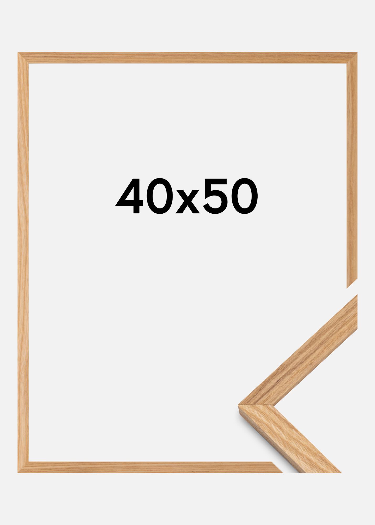 A moldura é projetada para caber em imagens de tamanho 40x50 cm, oferecendo muito espaço para exibir suas fotos favoritas. Com um perfil de moldura de 14 mm de largura e uma profundidade de 18 mm, esta moldura oferece uma construção robusta e estável. O belo grão do carvalho dá a cada moldura um caráter único e vibrante, tornando cada exemplar especial.