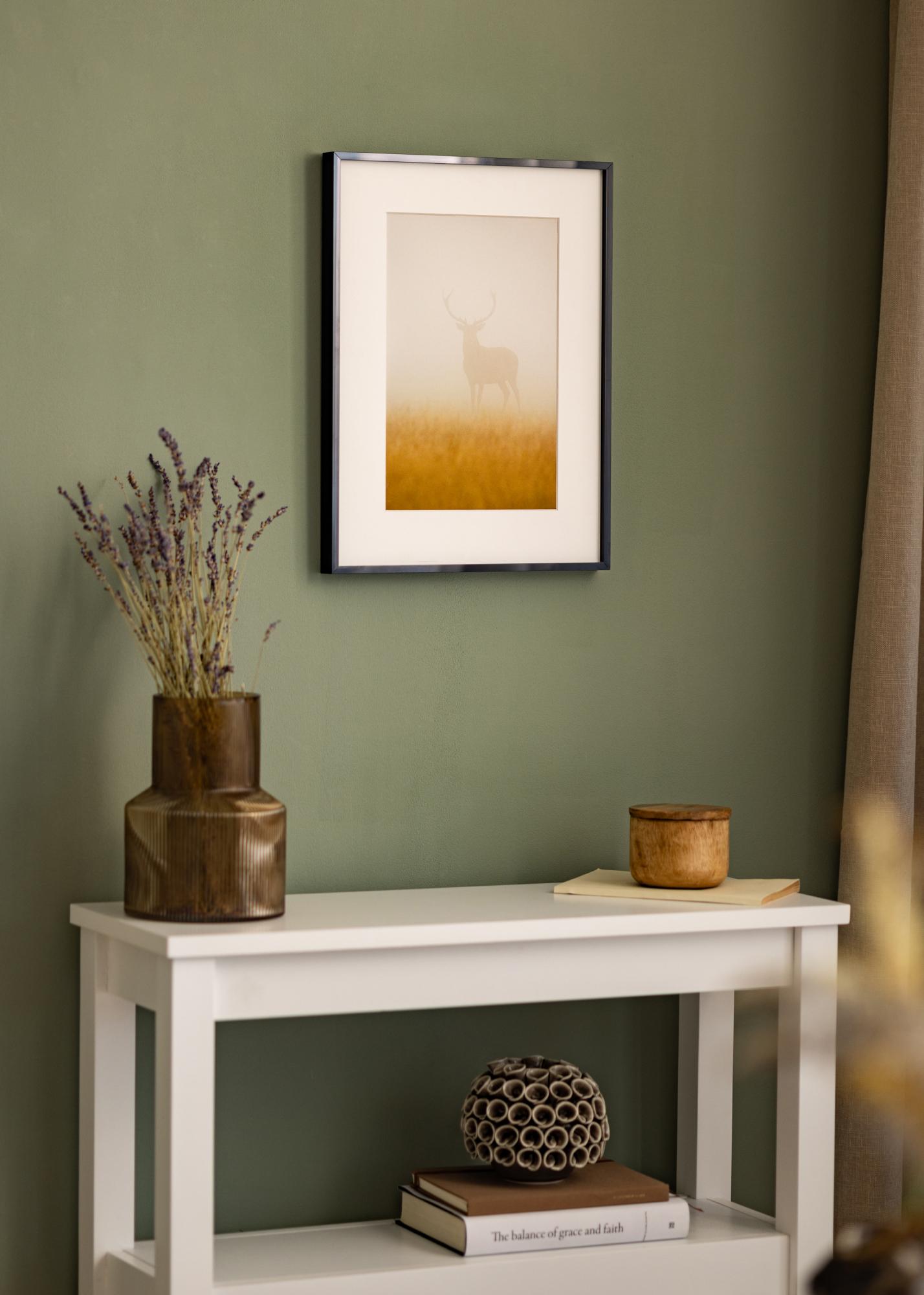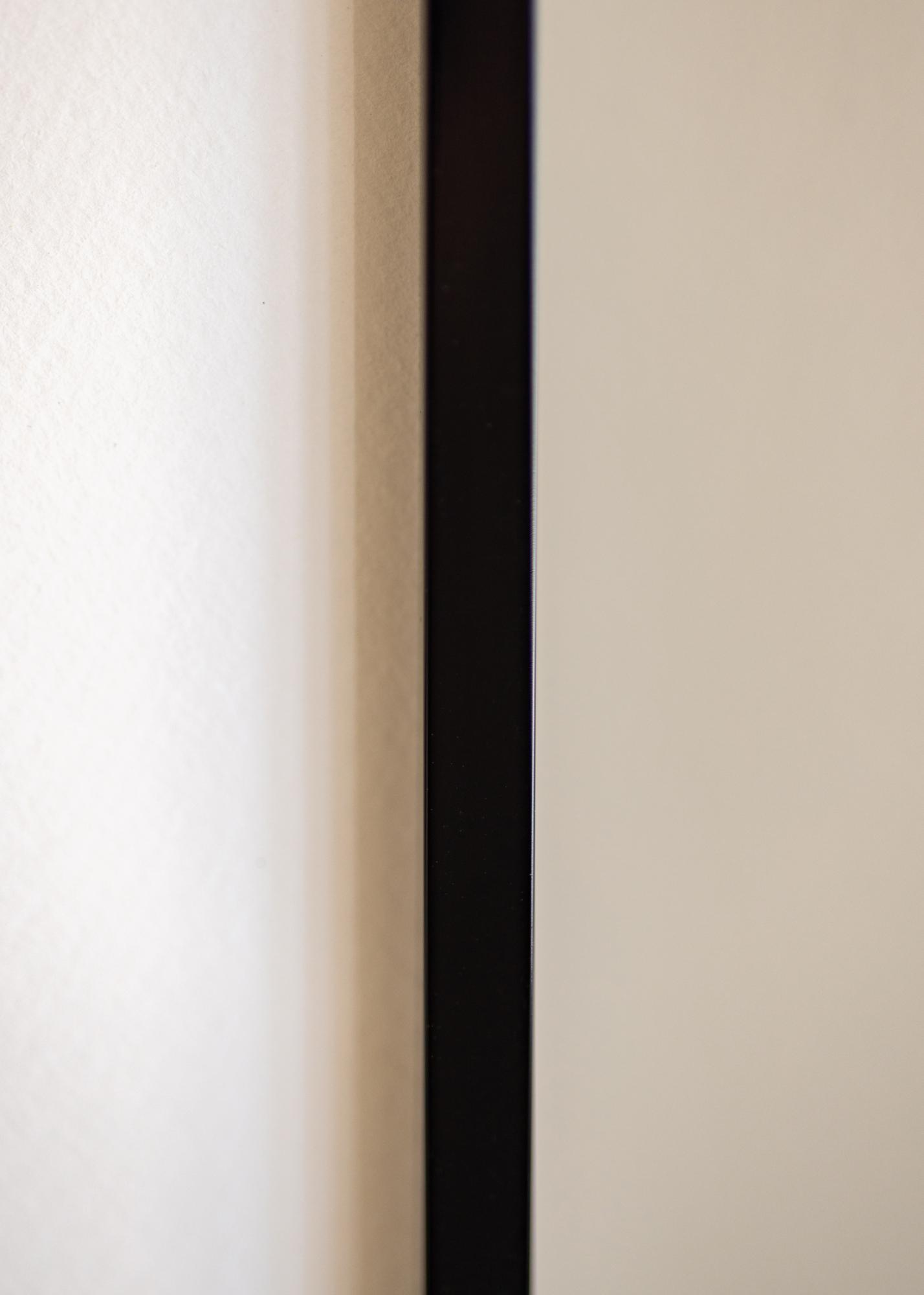 Elegante moldura premium com uma fina e brilhante moldura preta que encaixa-se perfeitamente num interior moderno e elegante. A superfície da moldura e a sensação minimalista do design esbelto a tornam ideal para uso com pósteres gráficos e fotografias em preto e branco. A moldura é feita de alumínio e está disponível em muitos tamanhos diferentes, o que a torna uma ótima opção ao criar uma galeria de parede com imagens em vários formatos diferentes, mantidas juntas pela escolha da moldura.