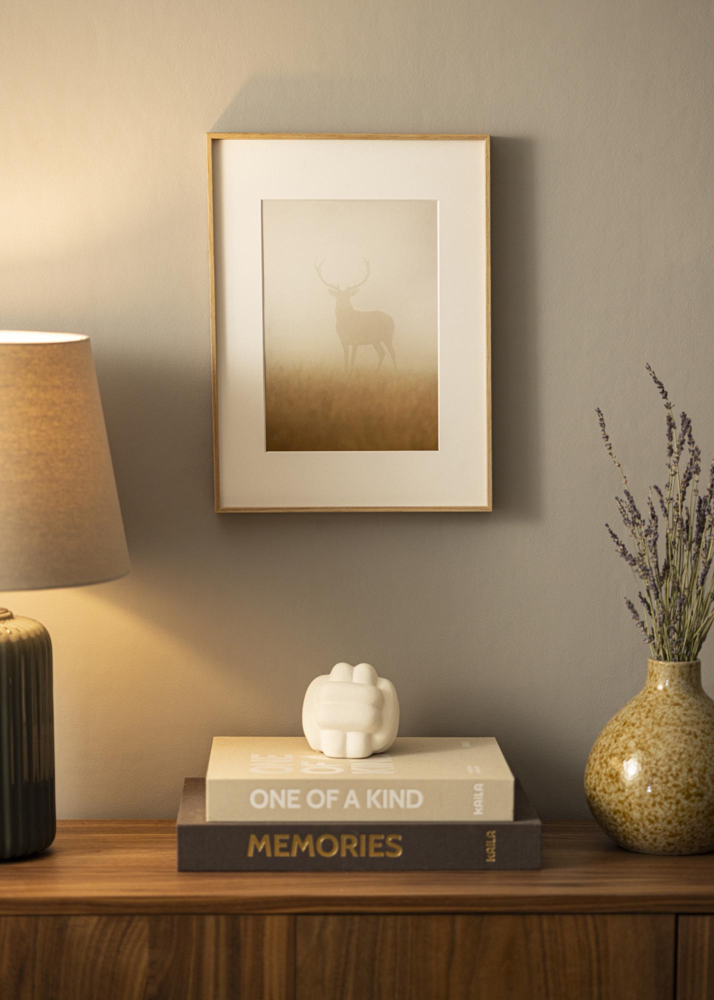 Uma das grandes vantagens da Moldura Nielsen Premium Zenit Carvalho é que pode ser feita sob medida de acordo com suas necessidades específicas. Isso significa que você pode obter uma moldura que se encaixa exatamente nas suas imagens, independentemente do tamanho. Como a moldura é fabricada em nossa própria oficina, podemos garantir alta qualidade e precisão em cada detalhe.