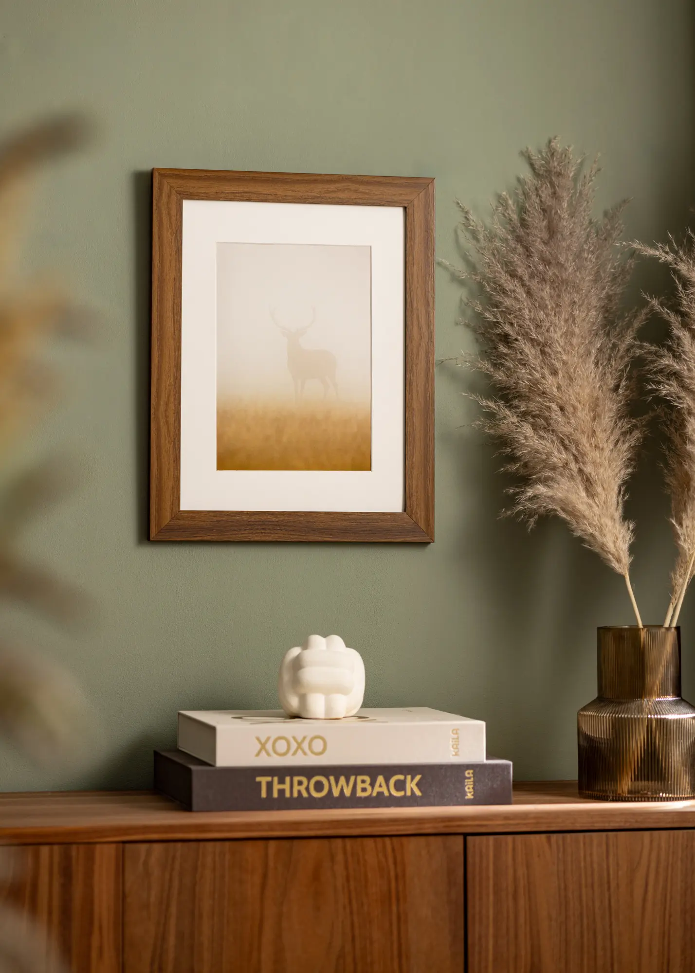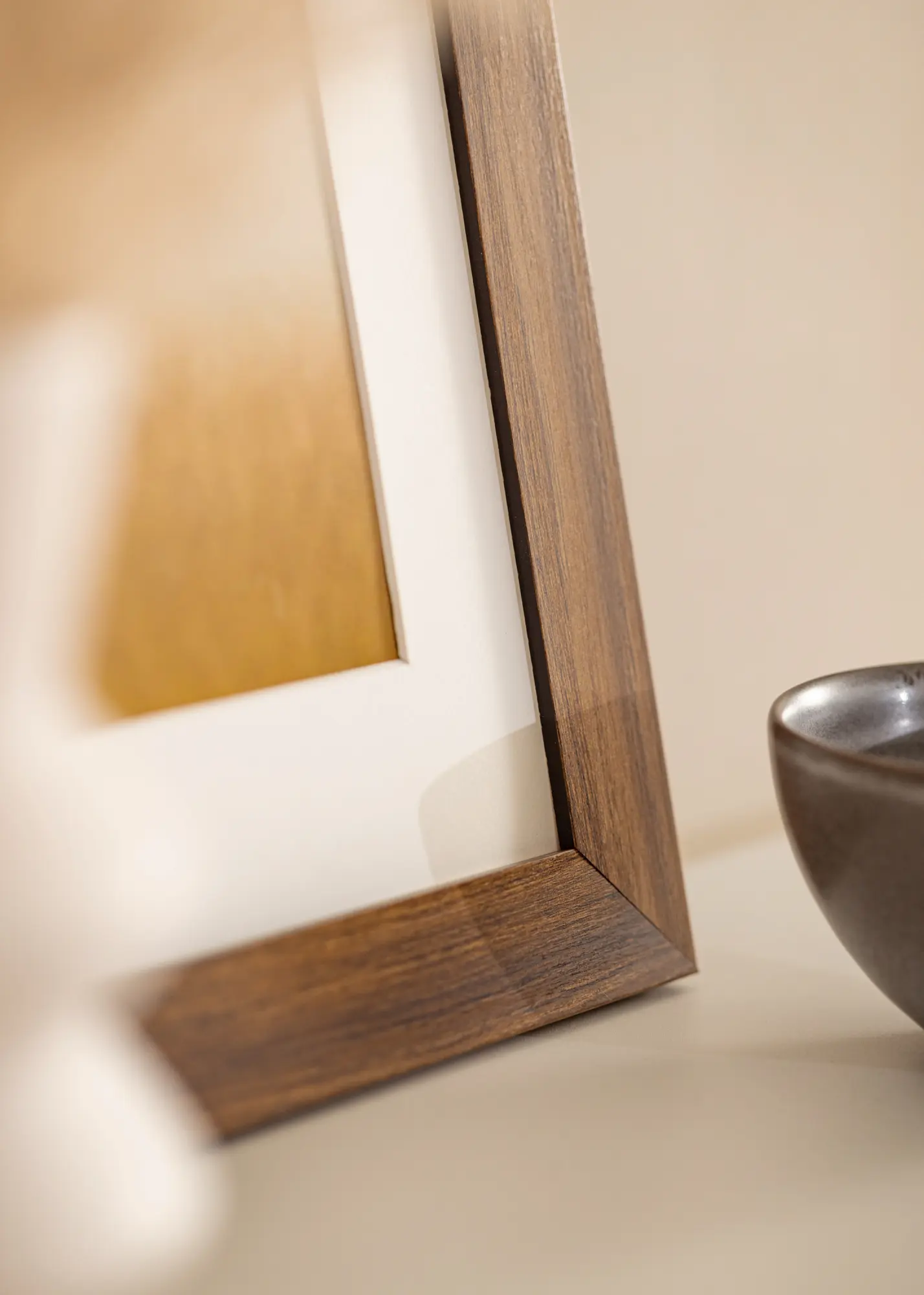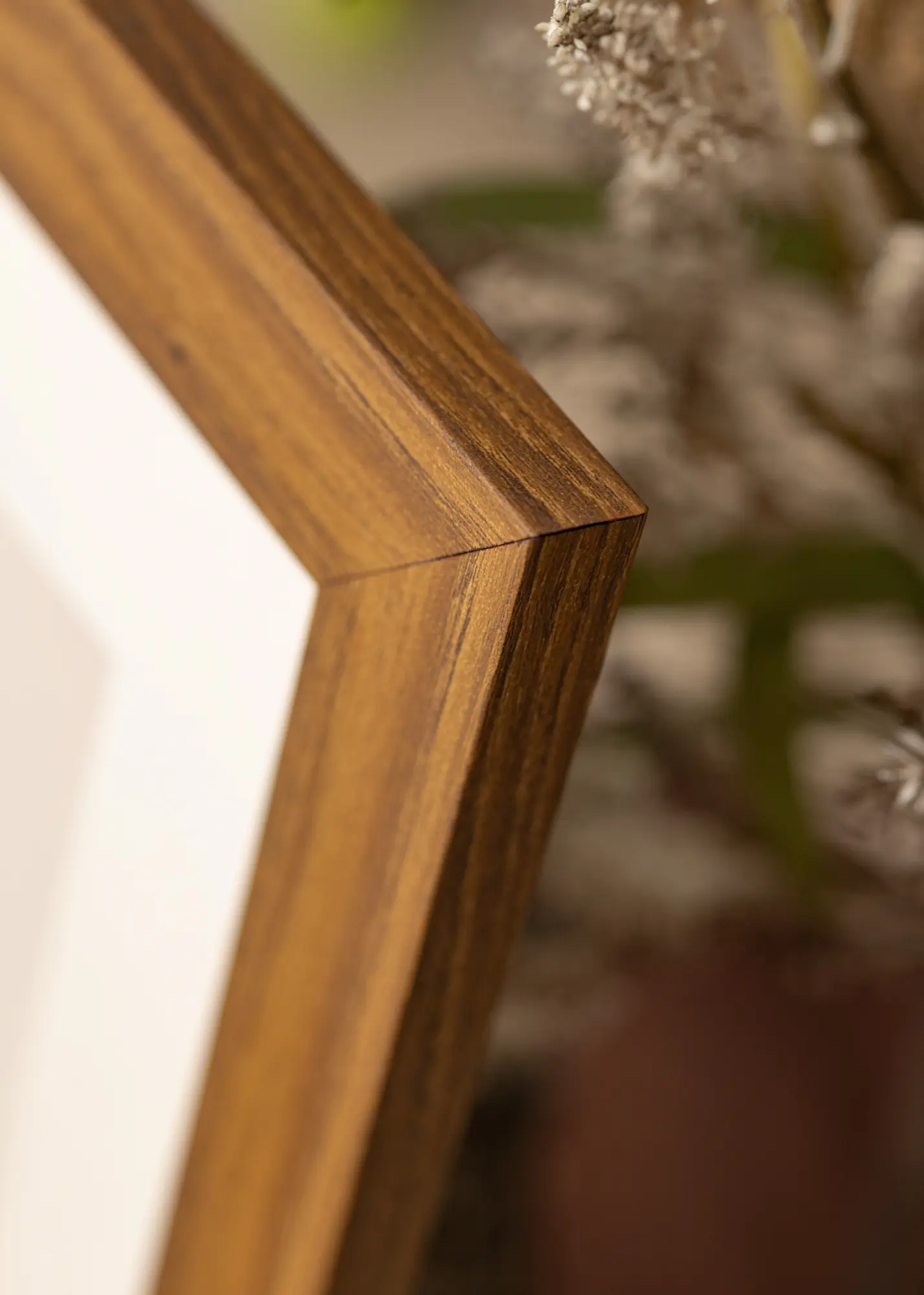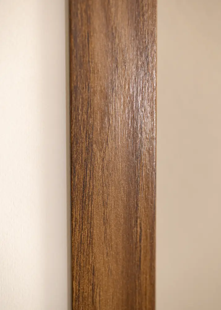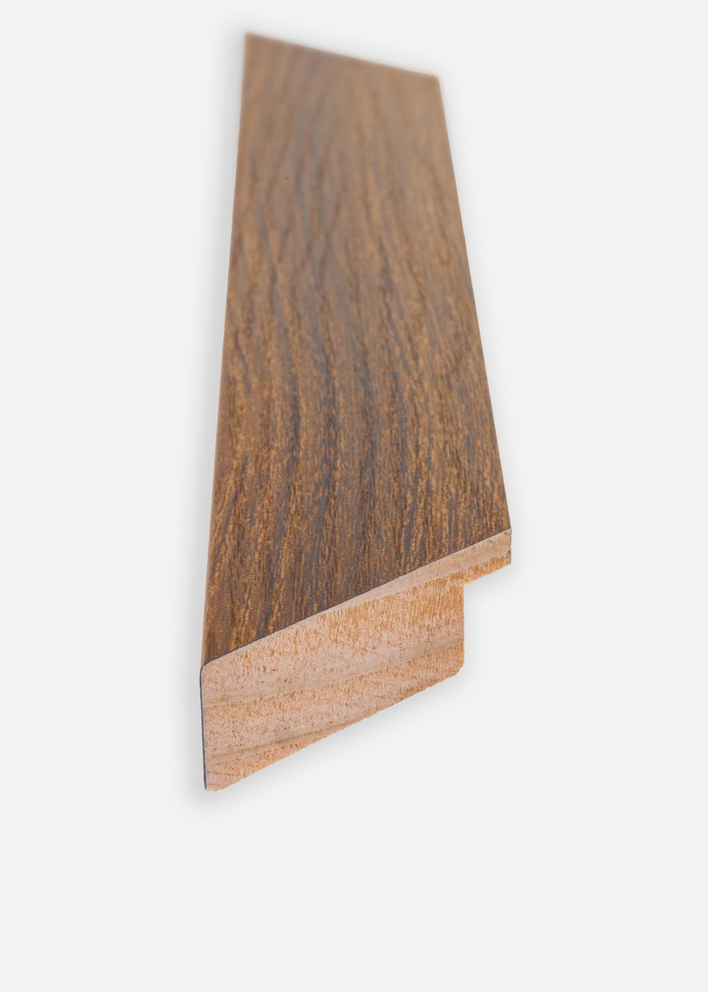 Moldura de madeira lacada em pinho com junção de dedos, de cor castanho claro, com um perfil largo de 40 mm que confere à sua moldura uma sensação exclusiva e é perfeito para emoldurar imagens maiores.