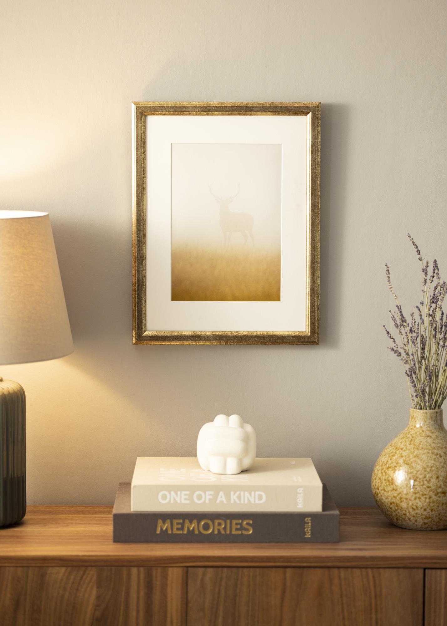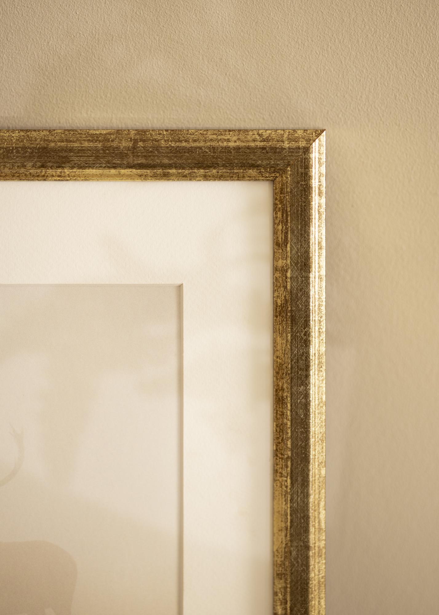 Moldura Nyhyttan Ouro Antigo é uma moldura fotográfica elegante e versátil que é produzida em nosso próprio atelier. Com sua cor dourada graciosa e superfície envelhecida, esta moldura oferece uma estrutura discreta que proporciona uma sensação rústica. O acabamento desgastado é combinado com bordas elegantes para criar uma moldura atemporal, perfeita para obras de arte e fotografias com caráter clássico ou vintage.