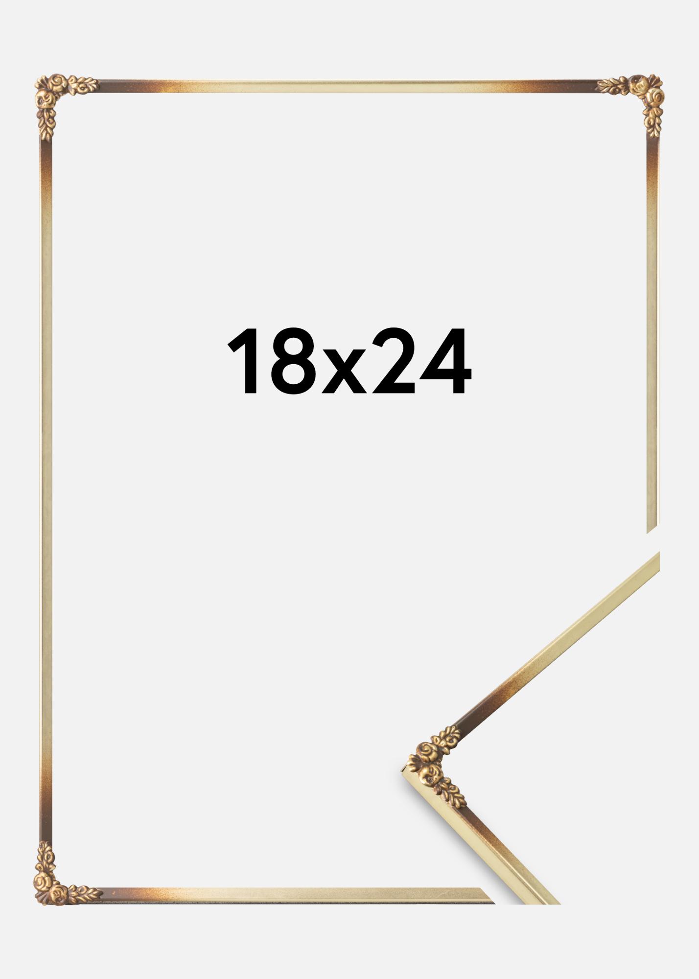 Ouro Metálico Rosa é uma moldura clássica que proporciona um emolduramento sofisticado para todas as suas imagens. Cada canto é decorado com pequenas rosas que são um pouco "queimadas" para obter o acabamento adequado. A moldura é feita de metal dourado, o que a torna resistente e ao mesmo tempo realça a sensação exclusiva que a moldura proporciona.