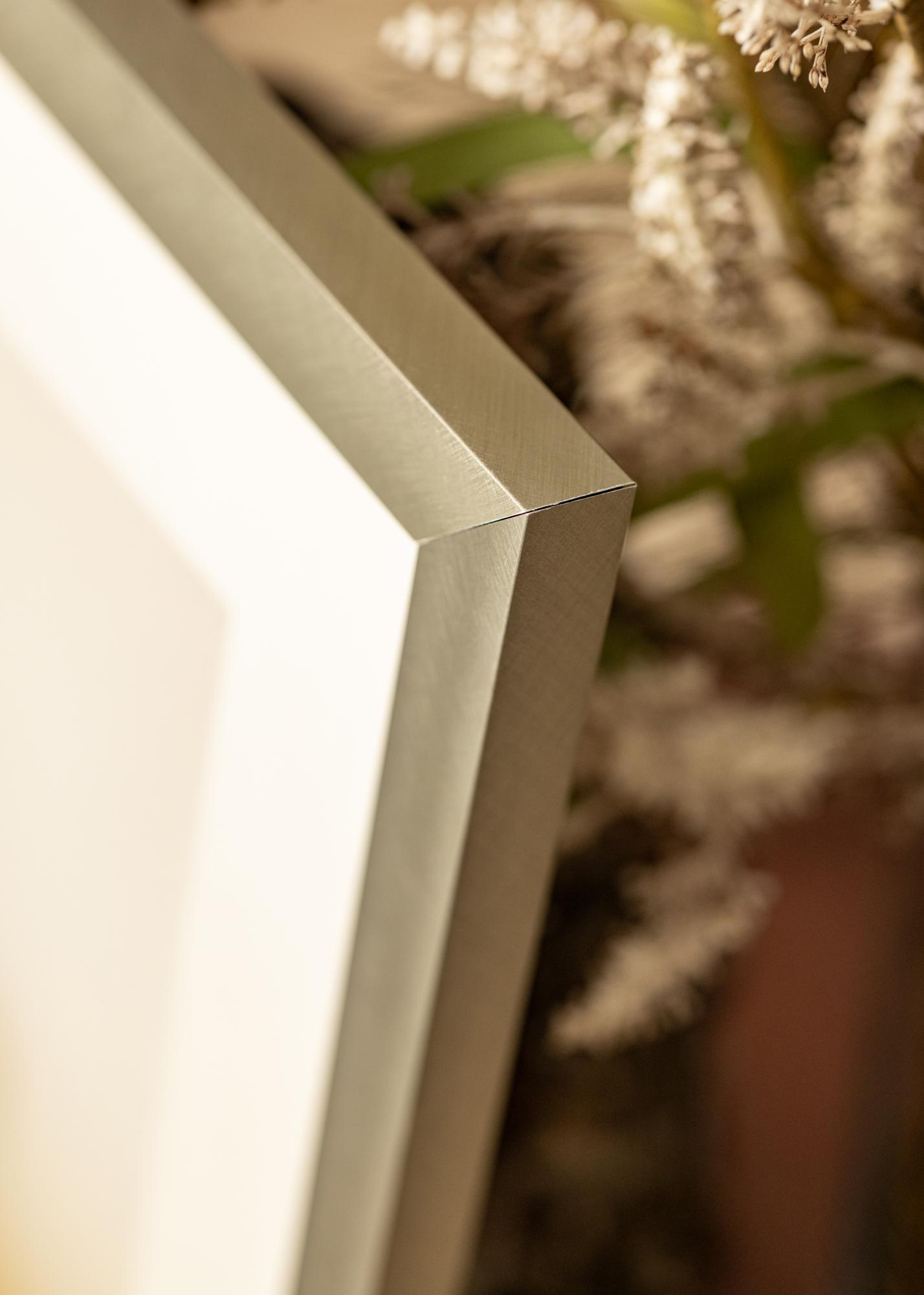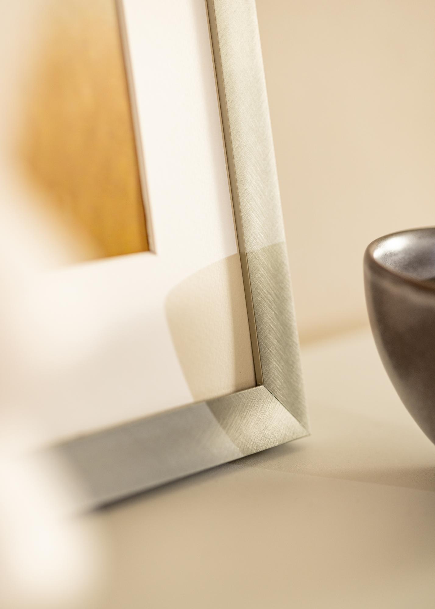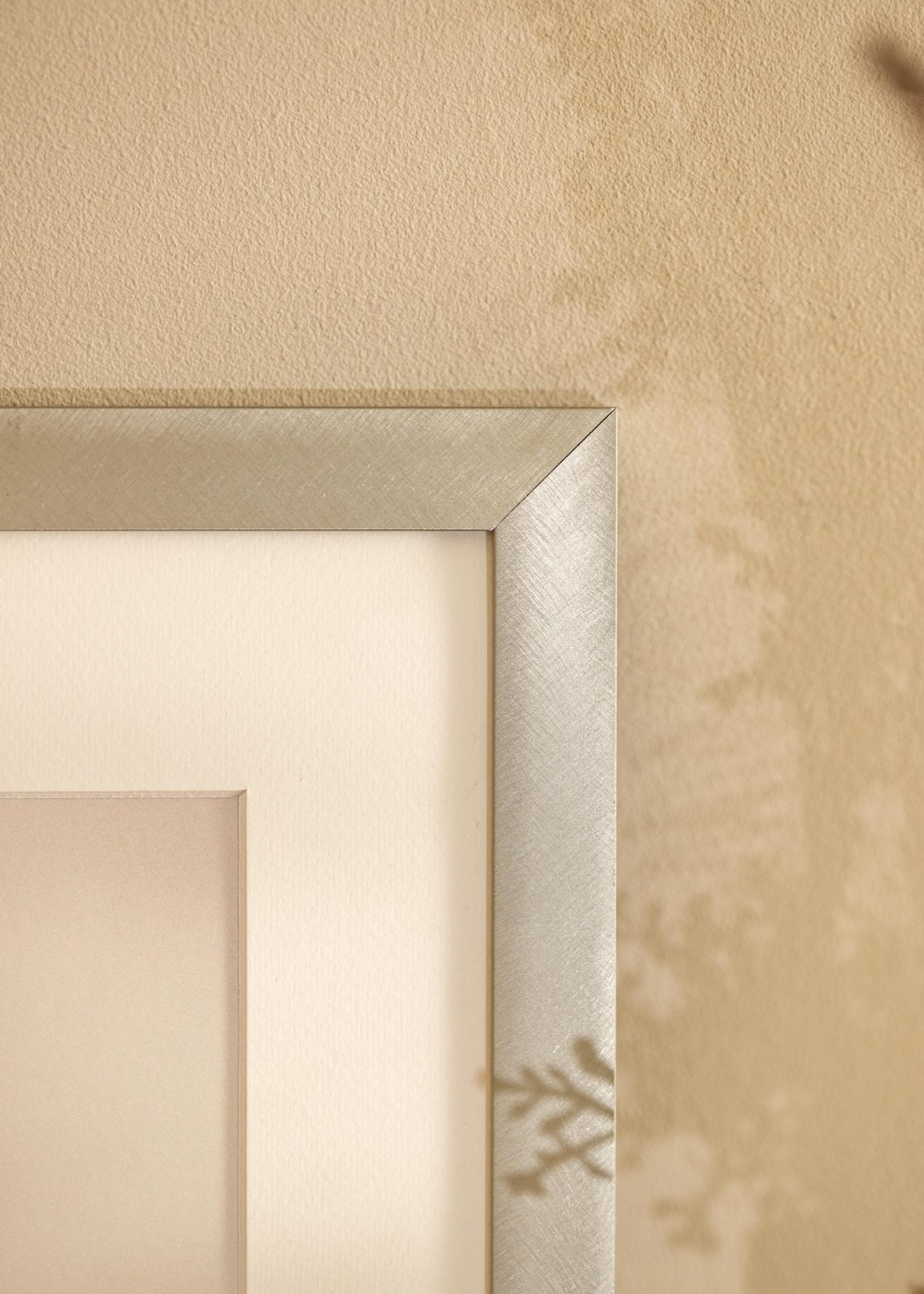 Bonito quadro moderno em alumínio escovado que combina bem com todos os tipos de fotografias, pósteres e aquarelas devido à sua cor neutra. A aparência discreta faz com que o quadro se integre na maioria dos ambientes, mas combina especialmente bem com o estilo nórdico frio. Apesar do seu design elegante, o quadro é robusto e estável. Adquira um passe-partout que complemente a moldura e realce a imagem de forma elegante. Pendure o quadro junto com outras imagens em molduras de metal.