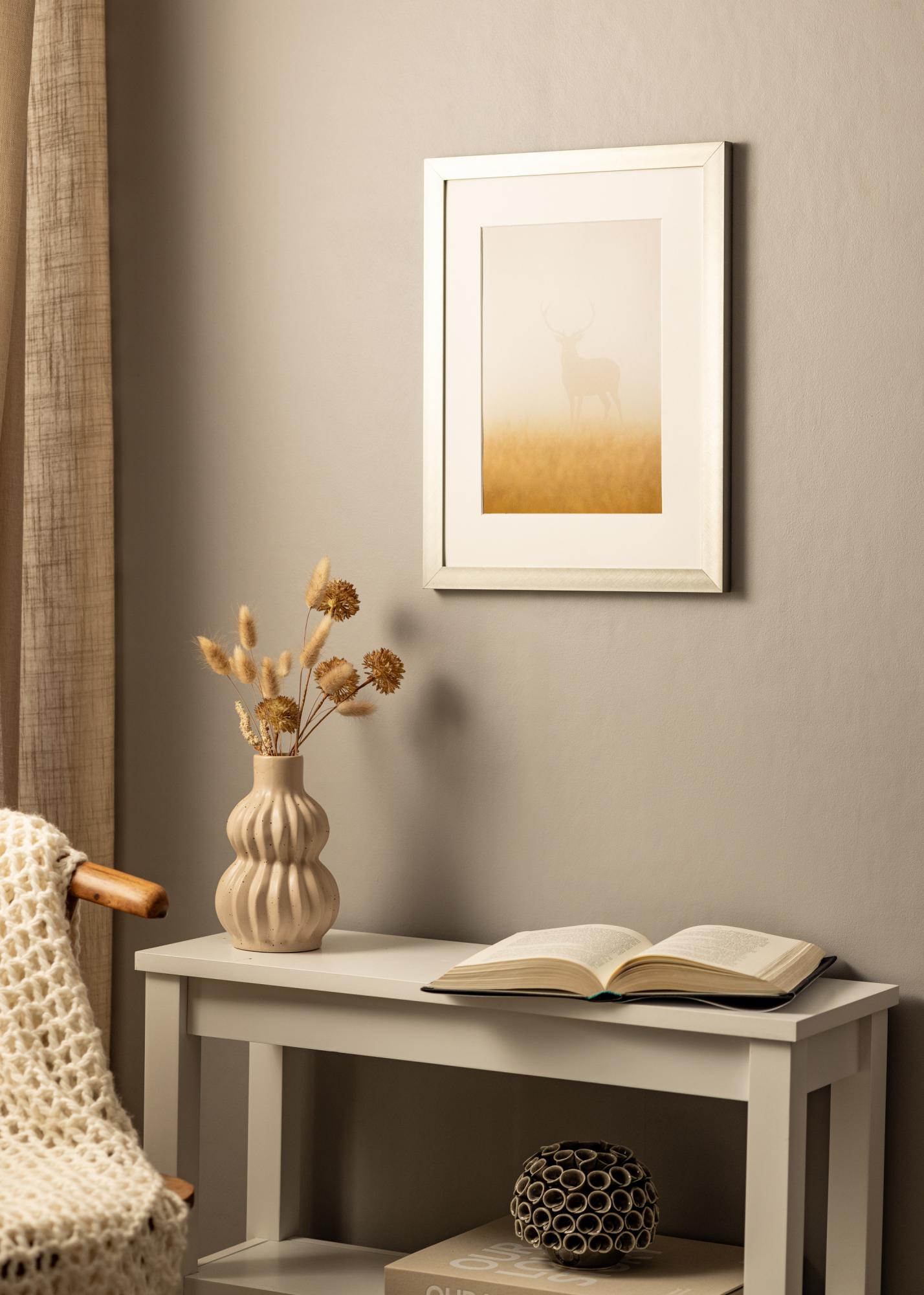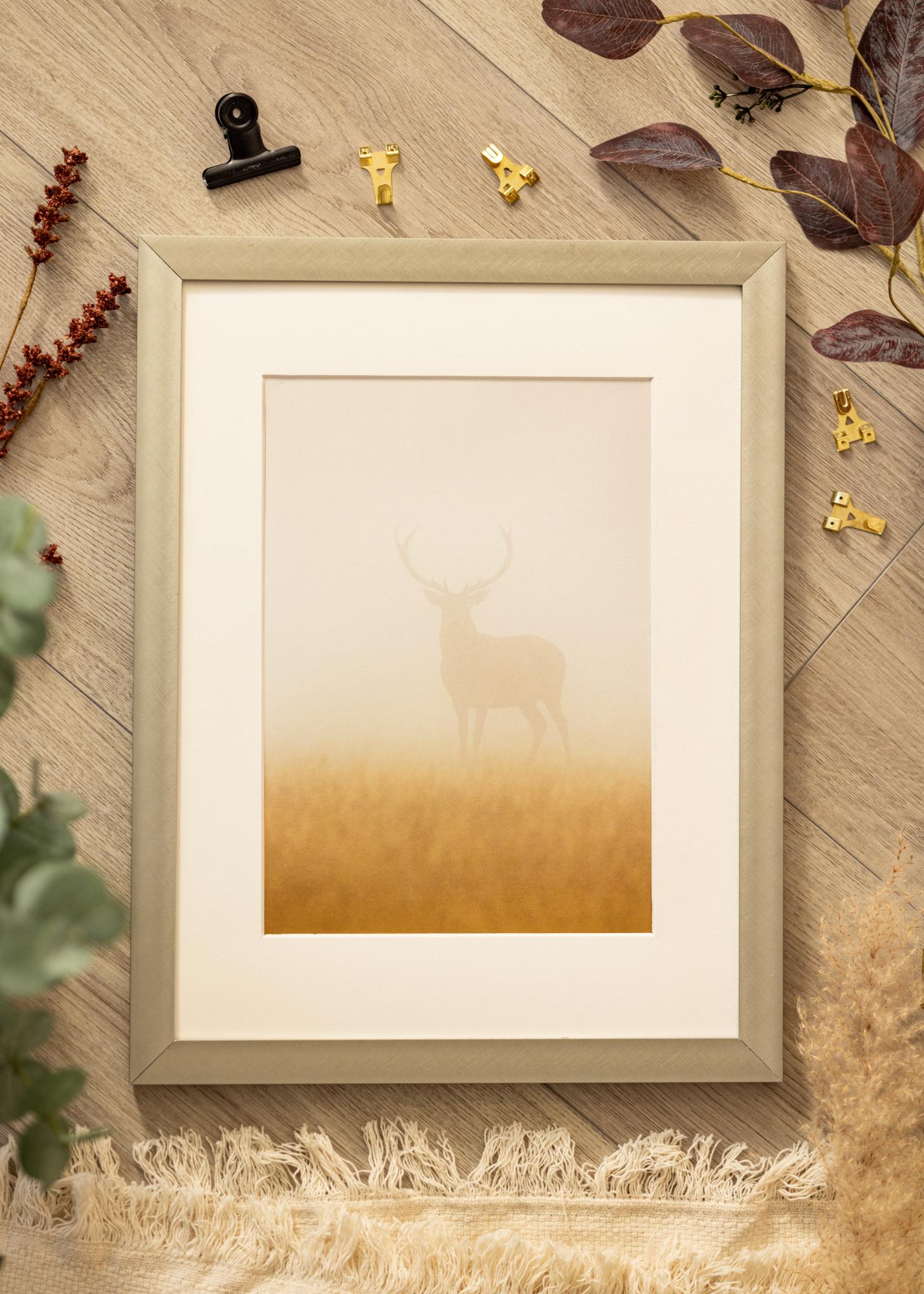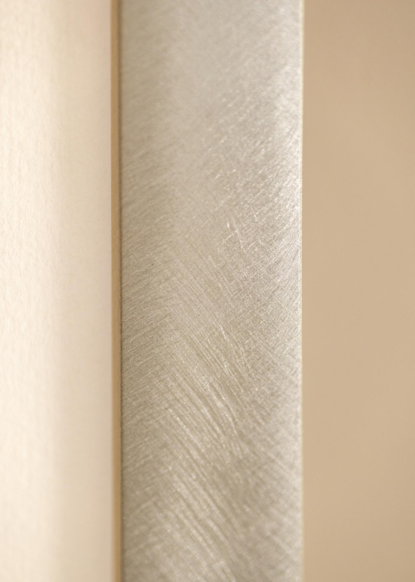 Bonito quadro moderno em alumínio escovado que combina bem com todos os tipos de fotografias, pósteres e aquarelas devido à sua cor neutra. A aparência discreta faz com que o quadro se integre na maioria dos ambientes, mas combina especialmente bem com o estilo nórdico frio. Apesar do seu design elegante, o quadro é robusto e estável. Adquira um passe-partout que complemente a moldura e realce a imagem de forma elegante. Pendure o quadro junto com outras imagens em molduras de metal.